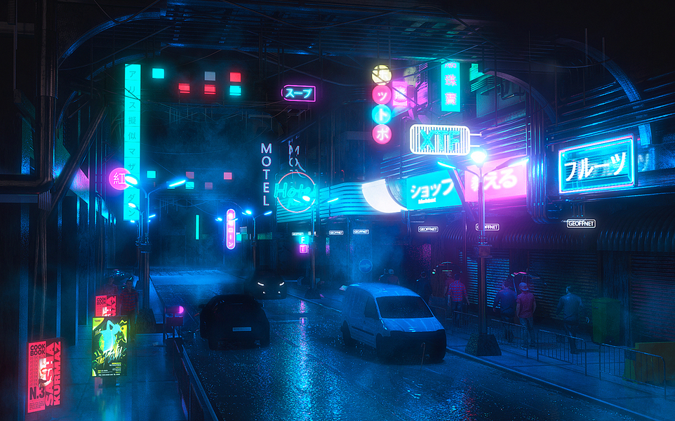 【C4D】赛博朋克风格街道搭建&渲染