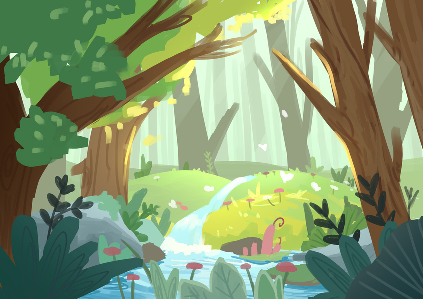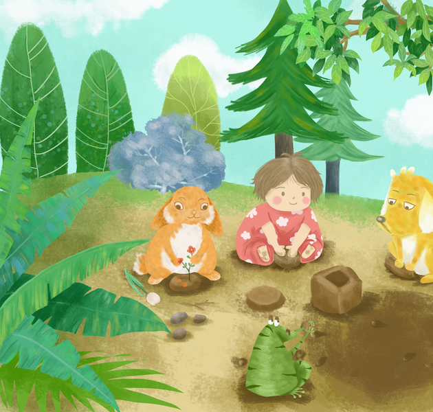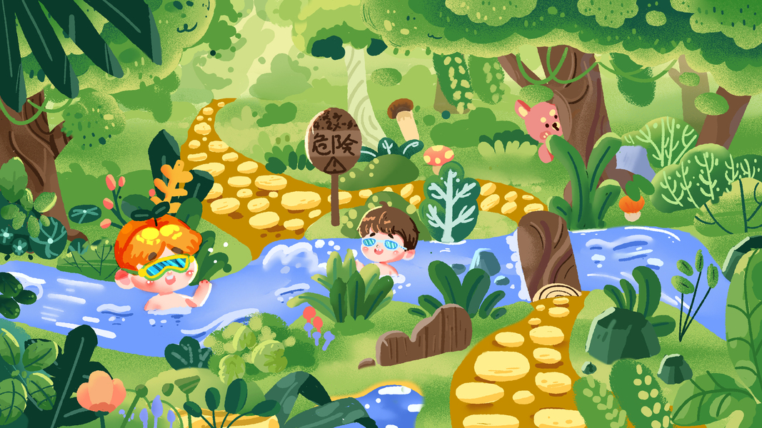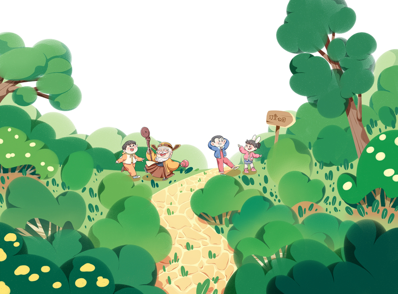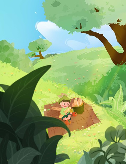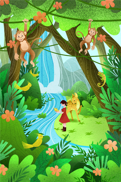森林全身小场景儿童插画