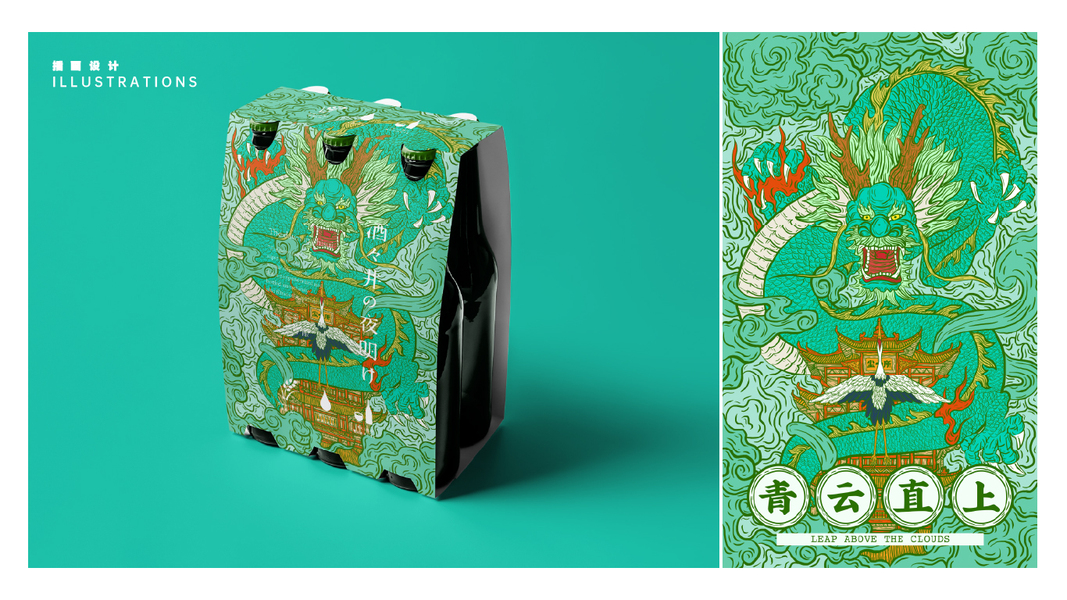 国潮插画作品之海喝不胖