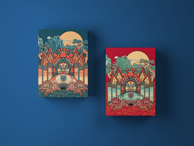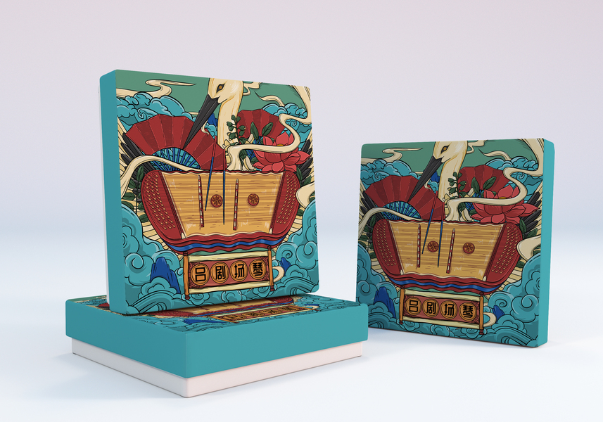 戏曲风格包装插画