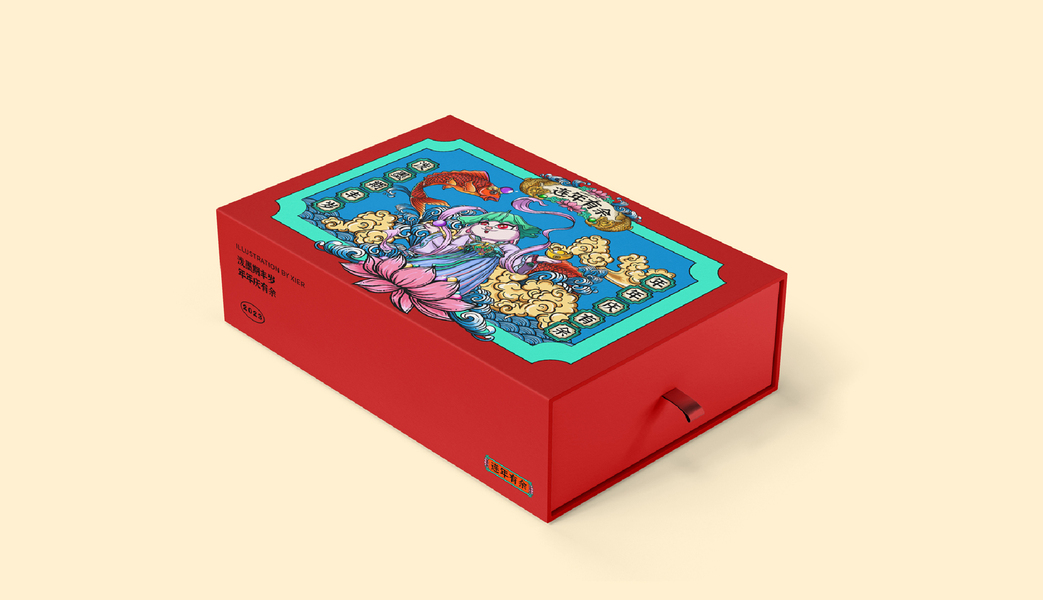 国潮插画 | 兔年新年主题(3)——《连年有余》