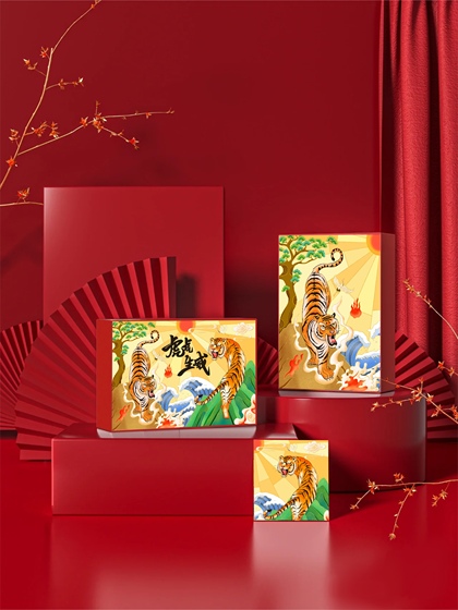 八马茶业 龙年单饼白茶 “龙腾盛世”插画礼盒包装设计