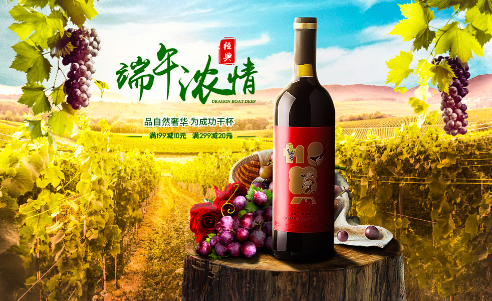 端午节红酒海报 天猫淘宝网店全屏海报PS合成创意图片