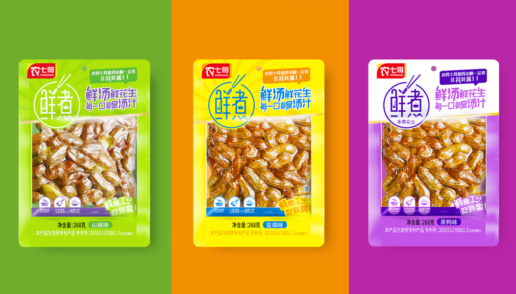 农七哥×水与木丨鲜煮水煮花生 包装设计