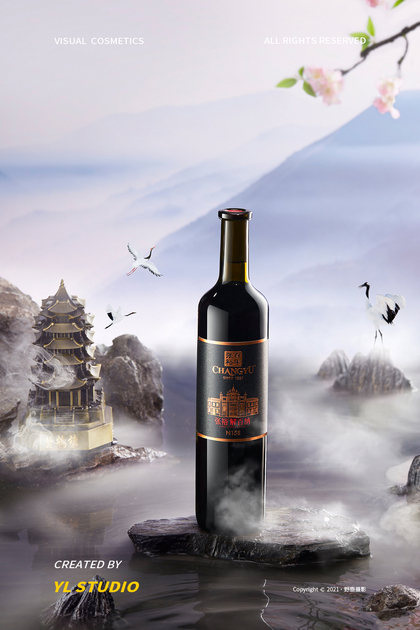红酒白酒气泡酒香槟拍摄 复古中国风产品拍摄