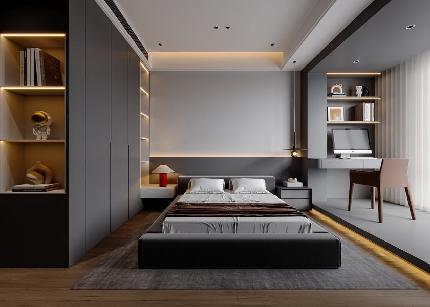 现代简约:横厅+开放式布局,暮色与白色交替融合