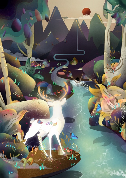 《灵鹿》西域敦煌九色鹿故事平面插图插画