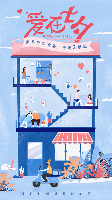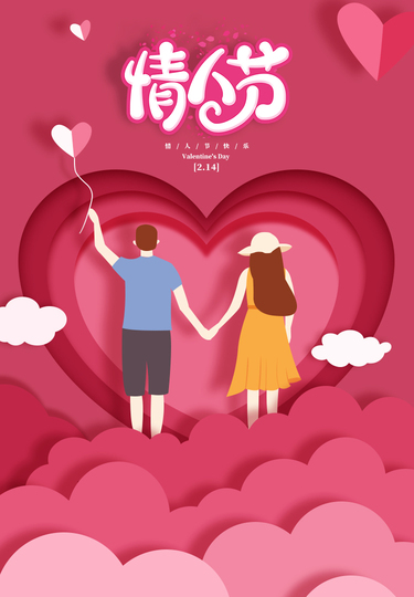 情人节剪纸风海报