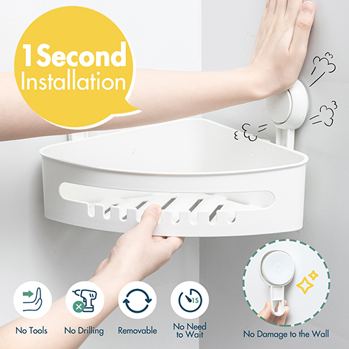 亚马逊 主图 A+ 浴室 墙角 置物架 吸盘 塑料