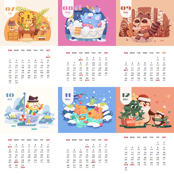 2023日历小场景7-12月