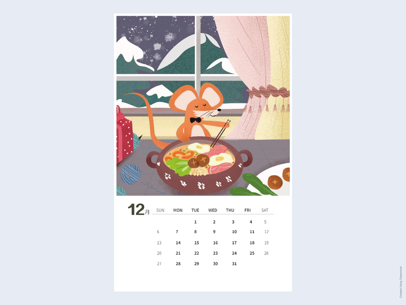 2020年鼠年台历插画设计
