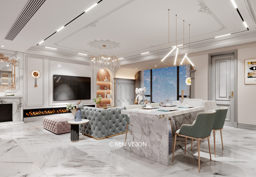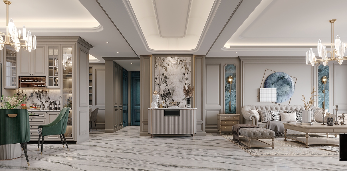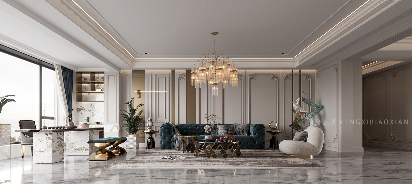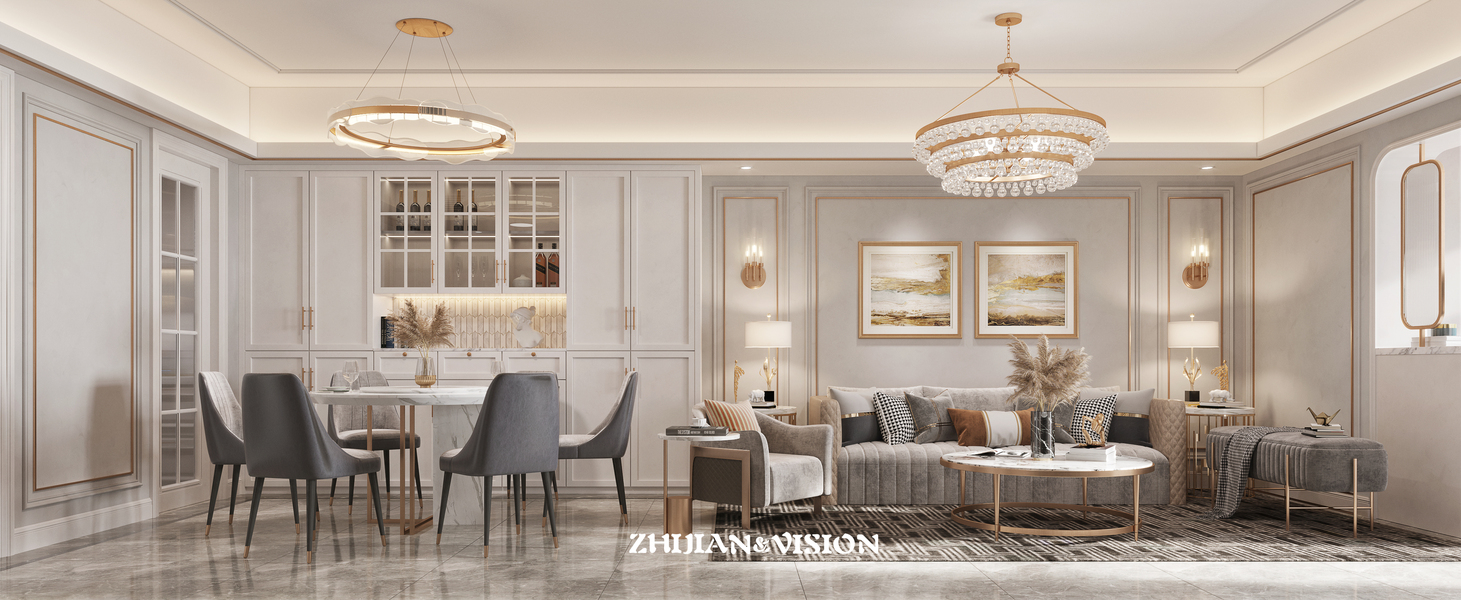 龙湖尘林间法式轻奢装修效果图,尘林间大平层装修方案