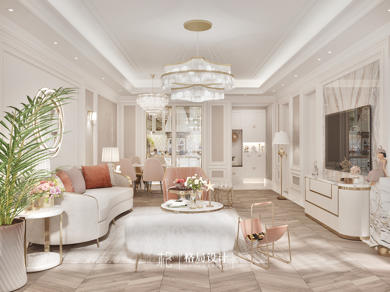 龙湖尘林间162户型装修案例,浪漫法式轻奢风设计效果图