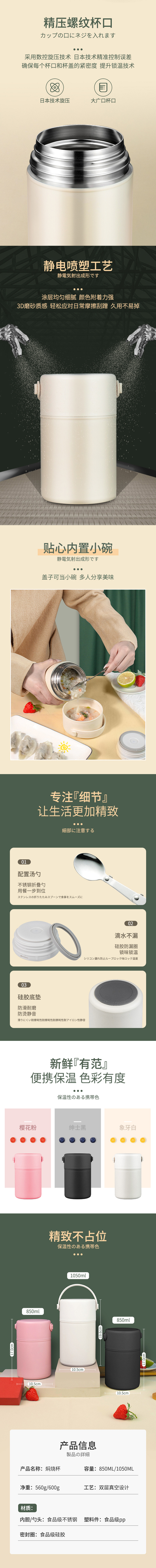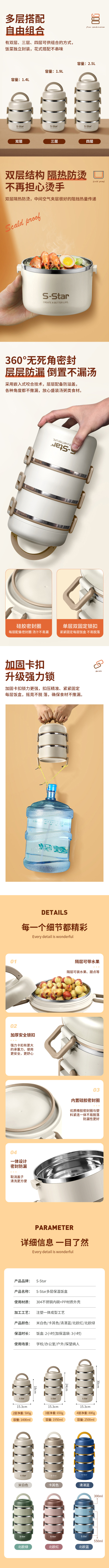 不锈钢保温饭盒详情保温桶详情制作学生带饭盒电商详情