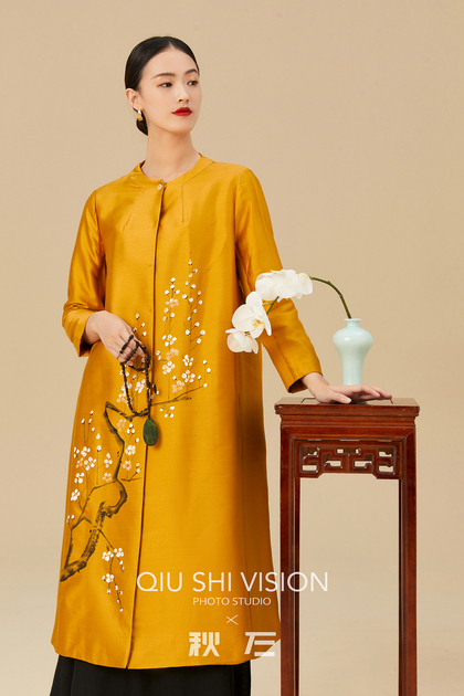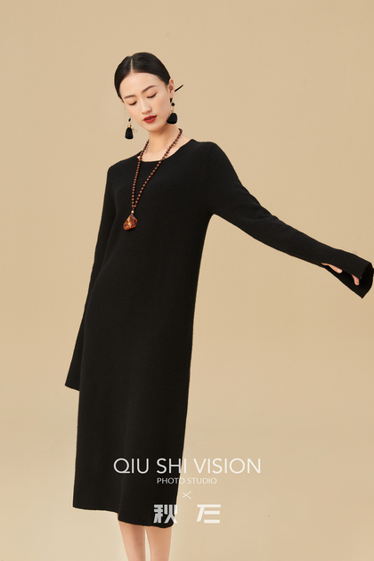 真丝连衣裙香云纱女装拍摄中老年装内景棚拍