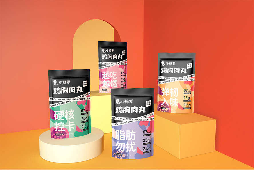 小鲸零商标logo标志设计减脂代餐鸡胸肉丸产品包装袋