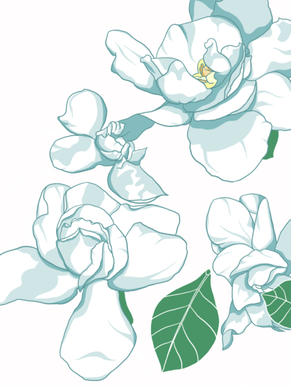 水彩花卉—栀子花开