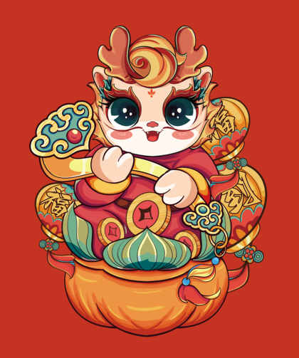 龙年卡通插画设计 童装印花设计 龙年烫画设计
