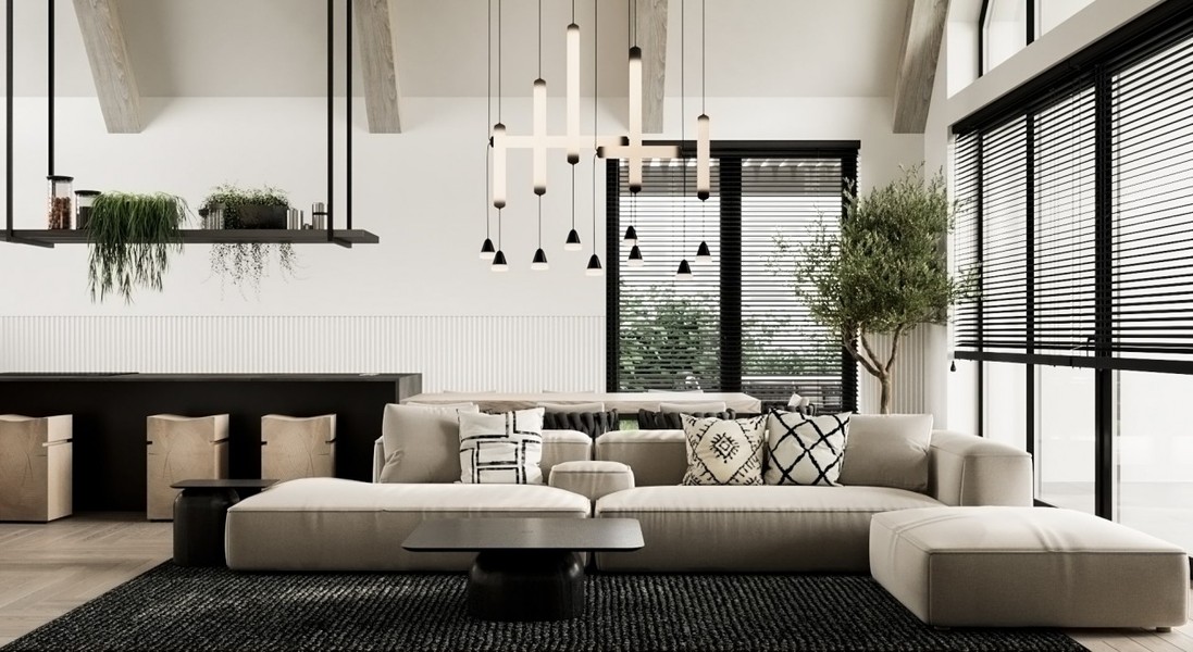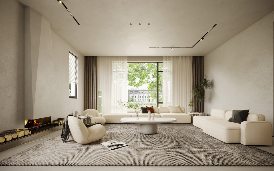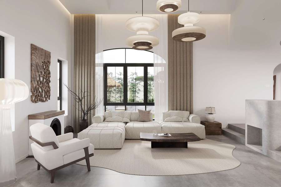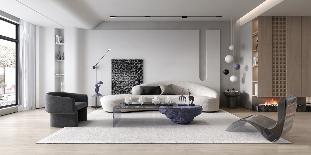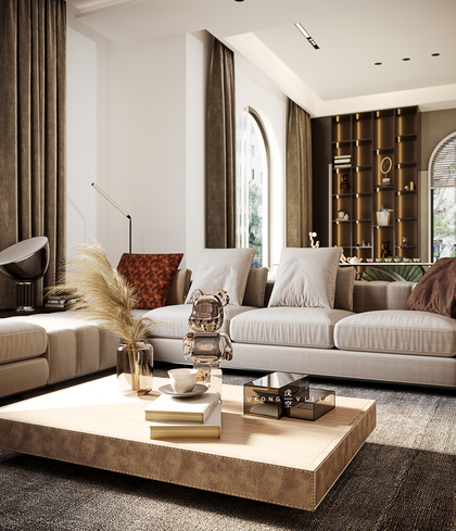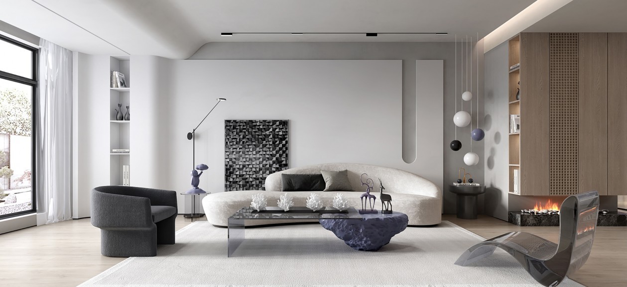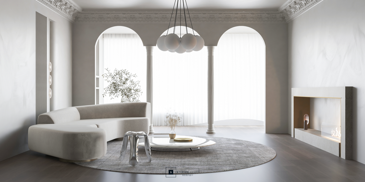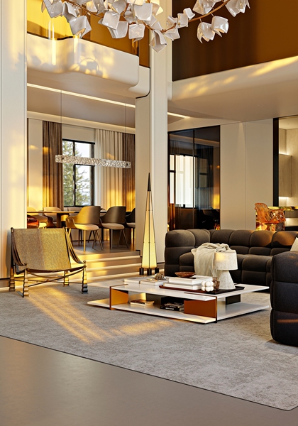 <戊空室内效果图表现 > 现代轻奢风别墅空间
