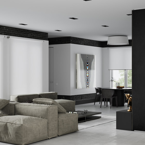 侘寂风全套客厅餐厅卧室效果图——花扮效果图