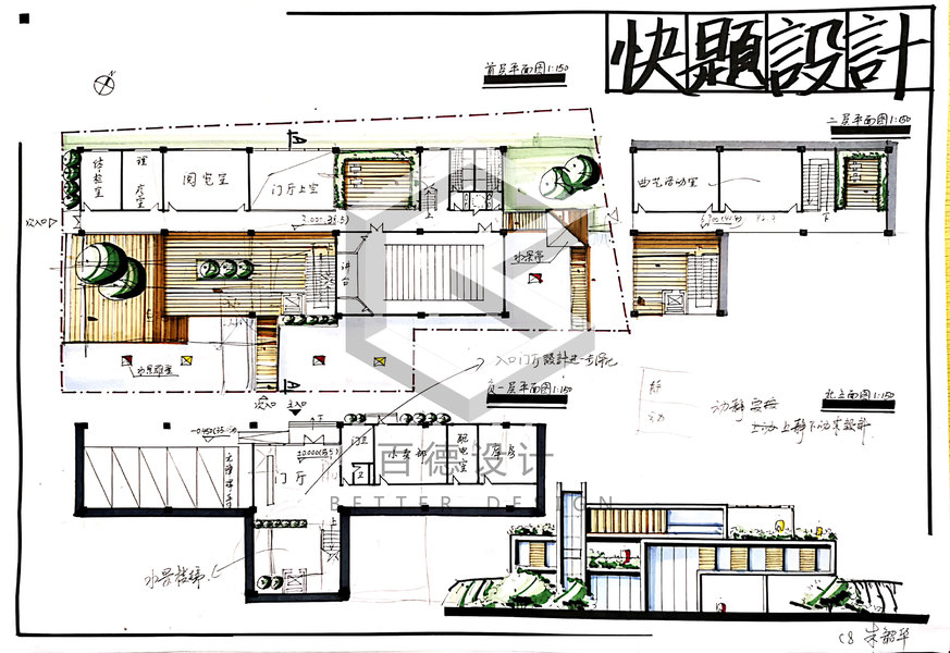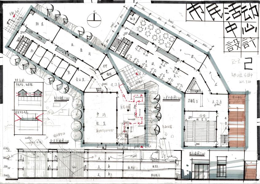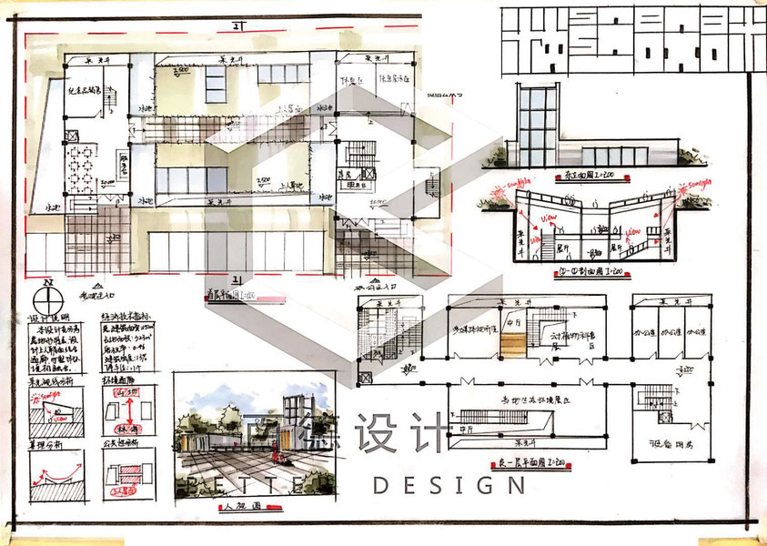 建筑复试快题状元作品,体块空间学起来(百德设计)