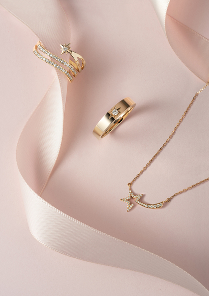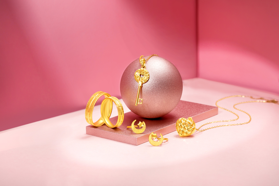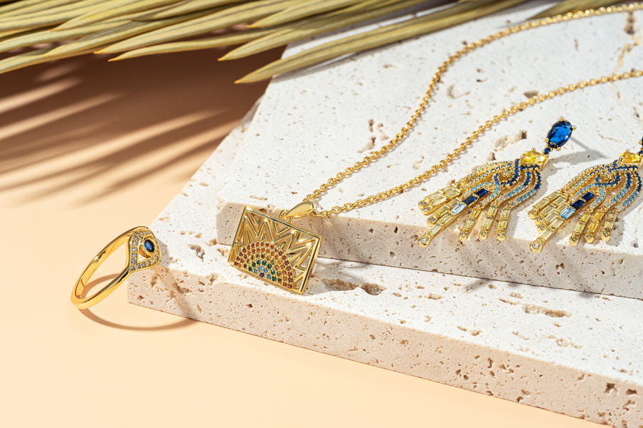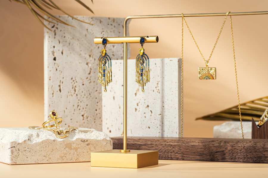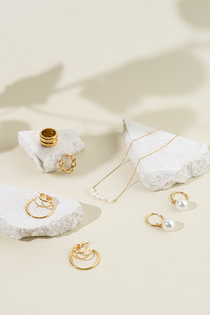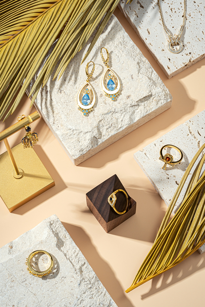 摄影配饰,耳环戒指,场景简约风格拍摄。
