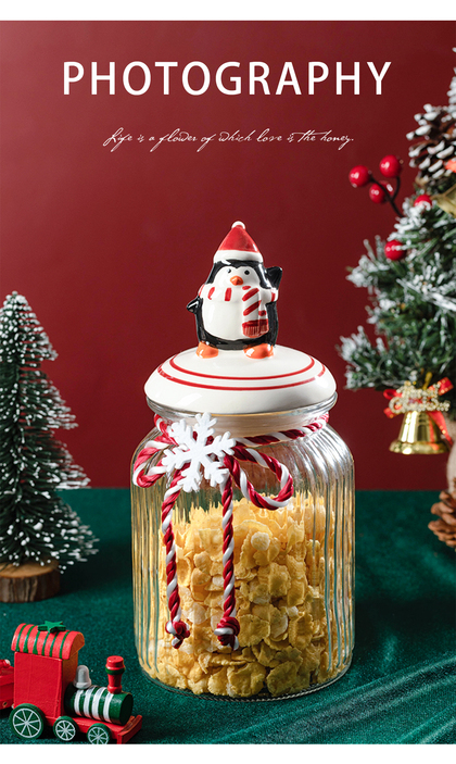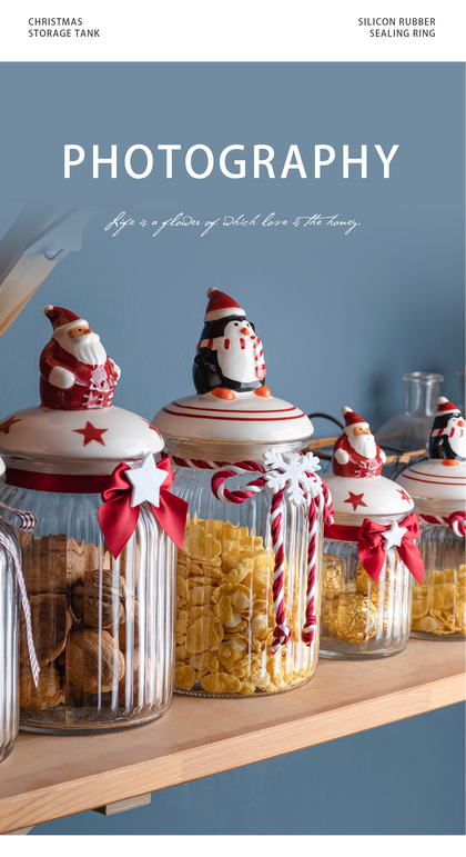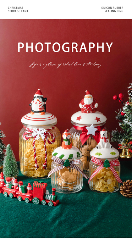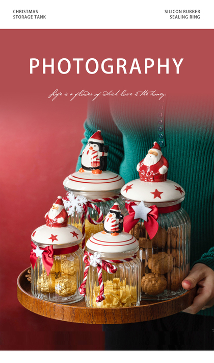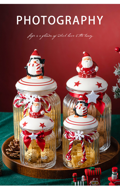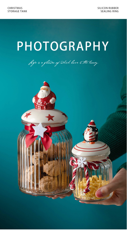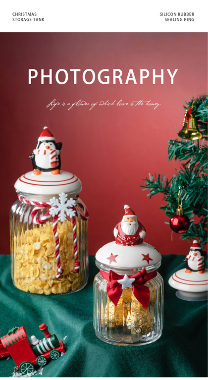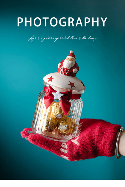 电商摄影 产品拍摄 圣诞储物罐钠钙瓶身陶瓷杯盖