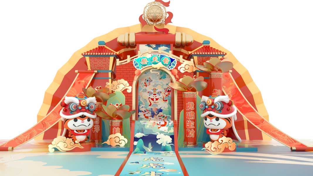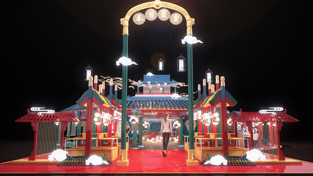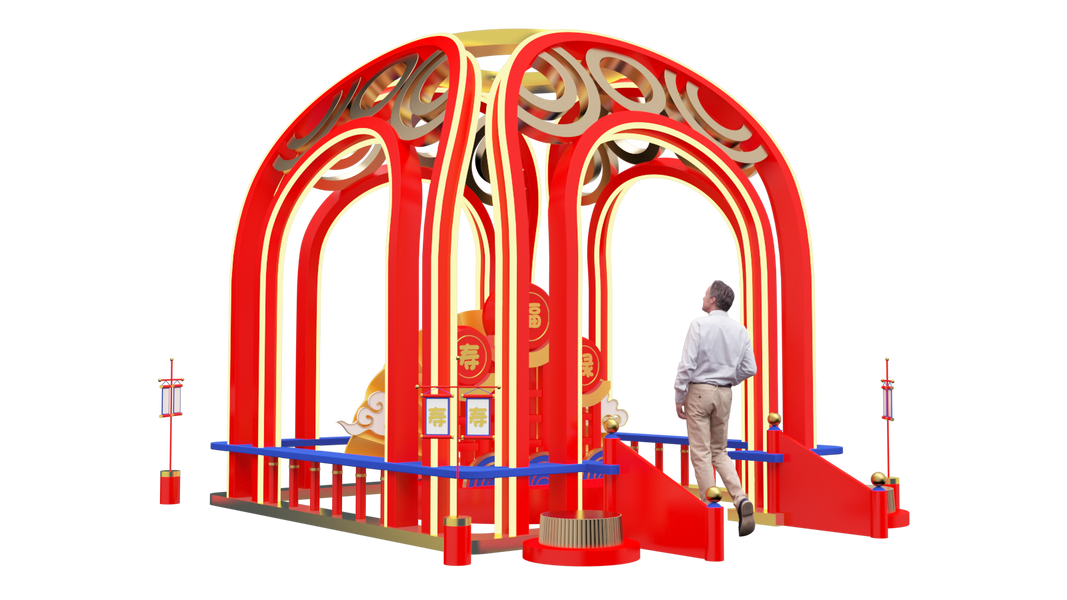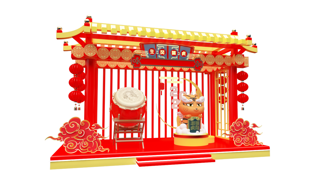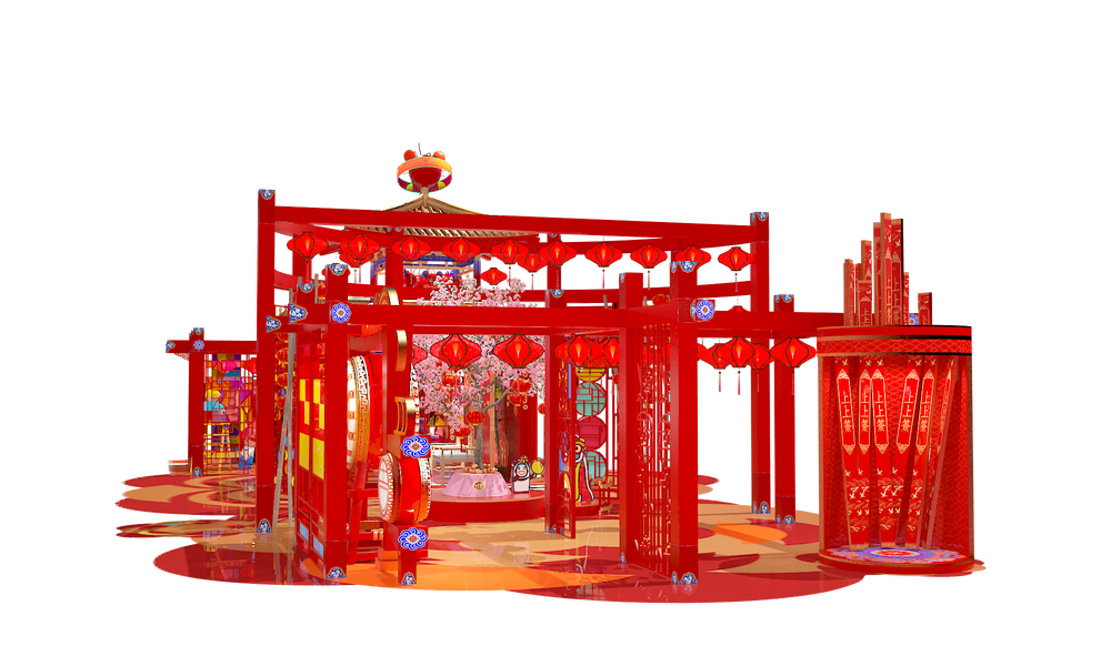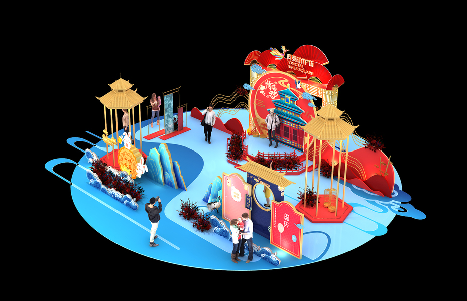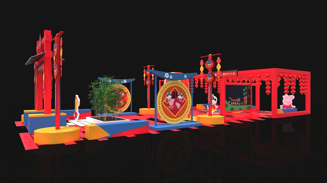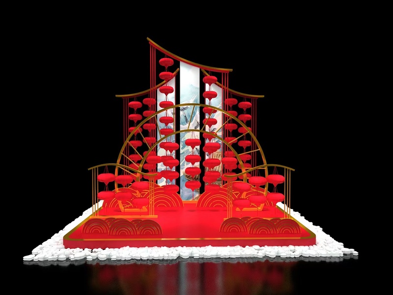 国潮风格商业美陈3D效果图设计 国潮DP打卡拍照点位