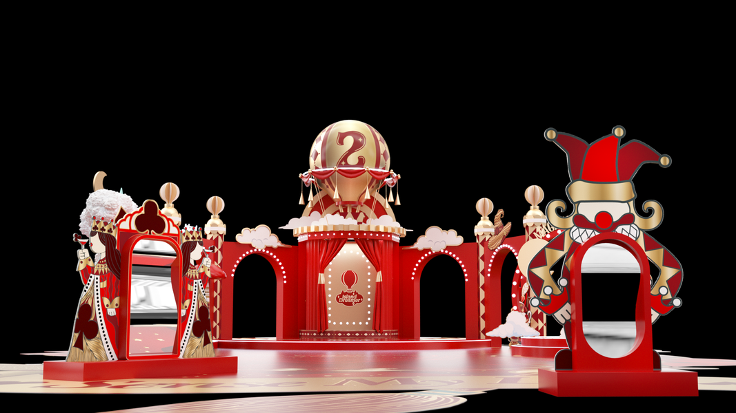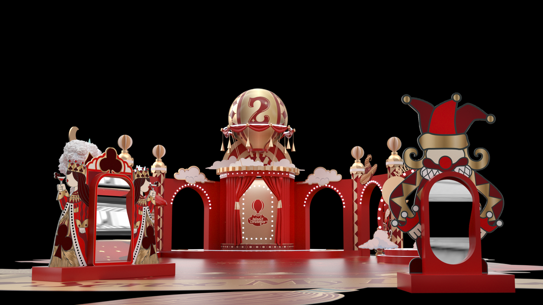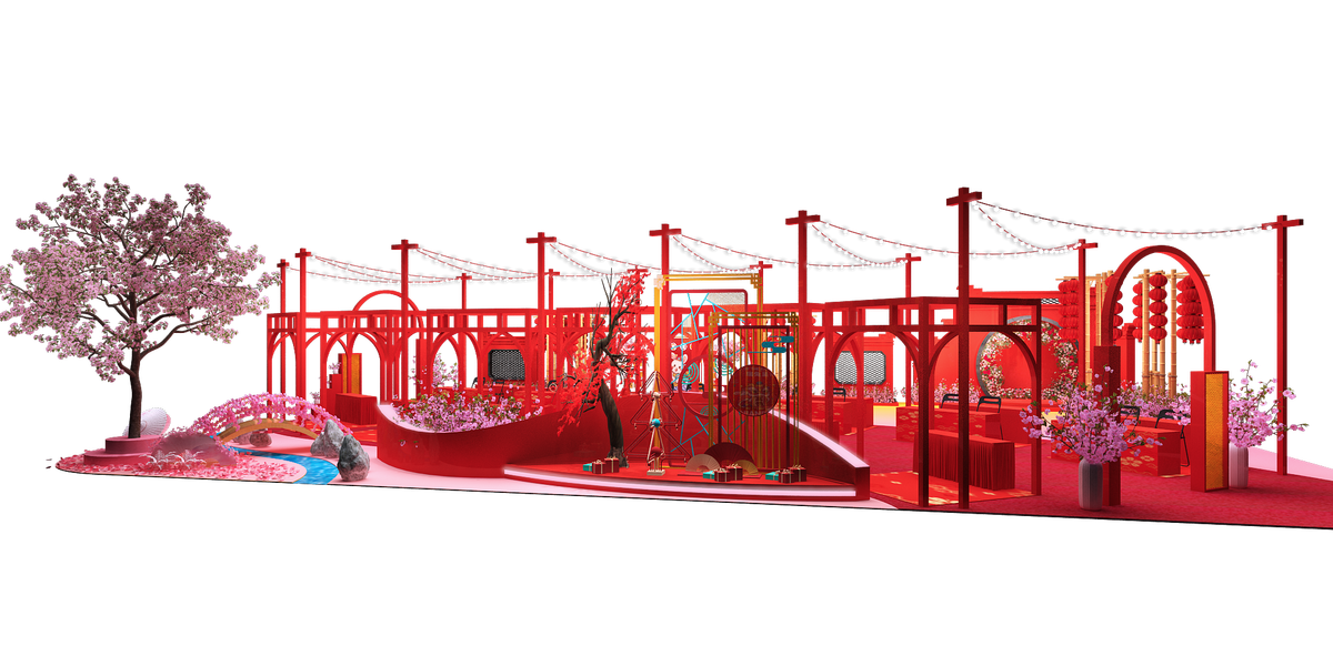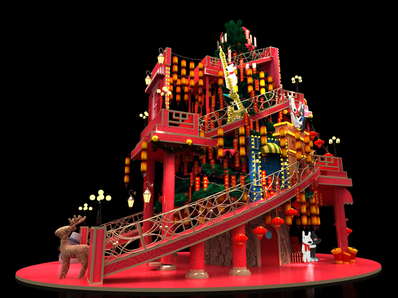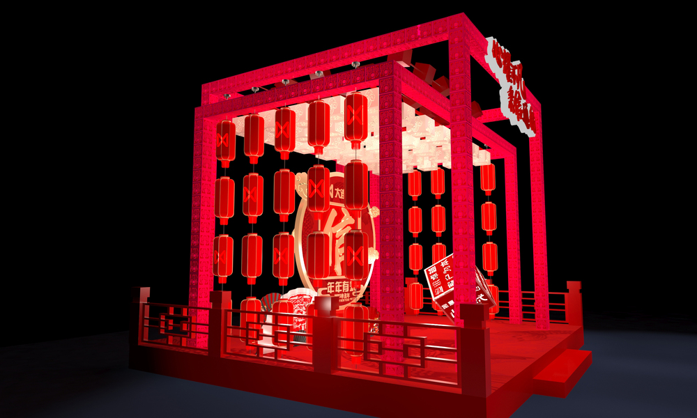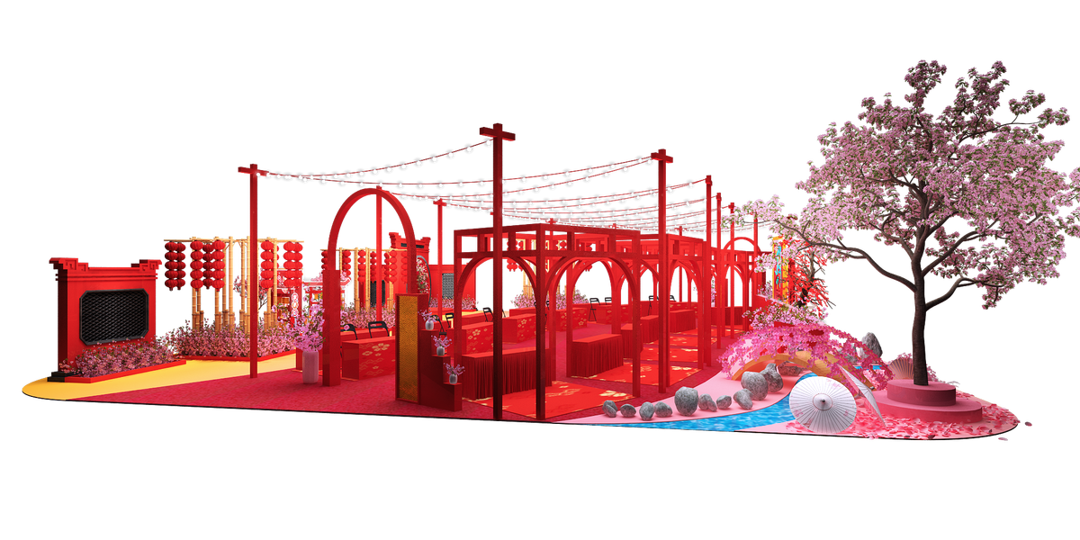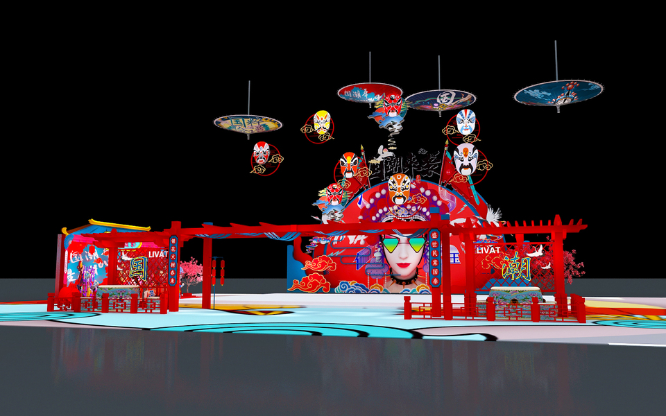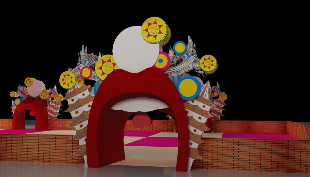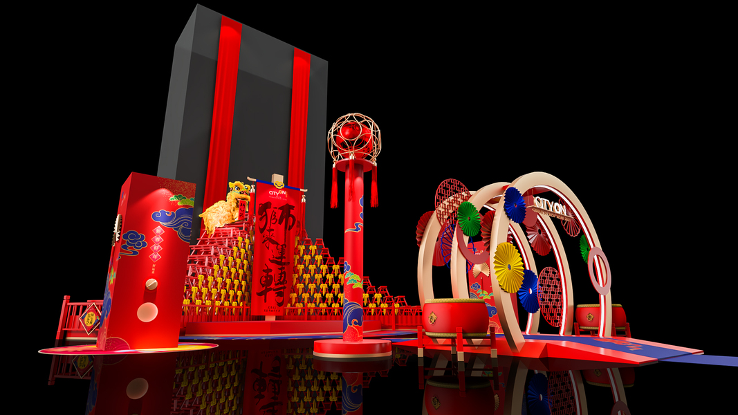 国潮风格商业美陈3D效果图设计 国潮DP打卡拍照点位
