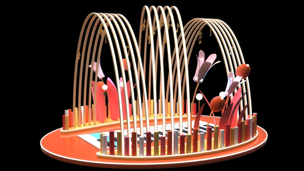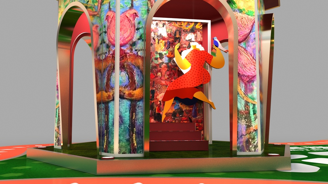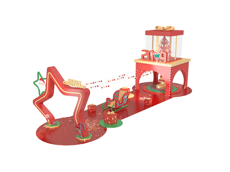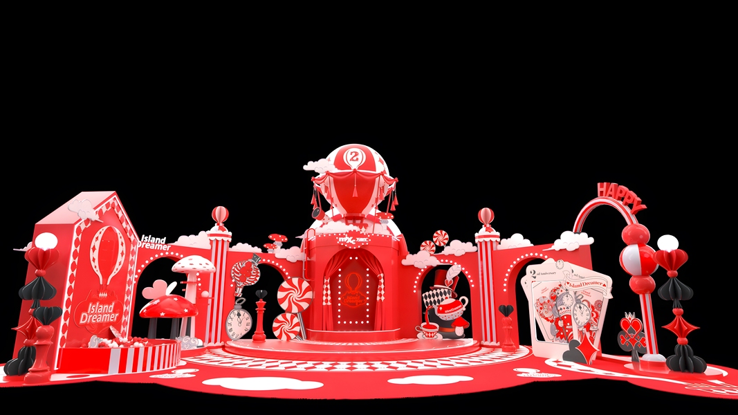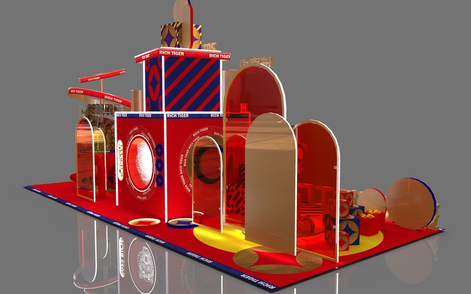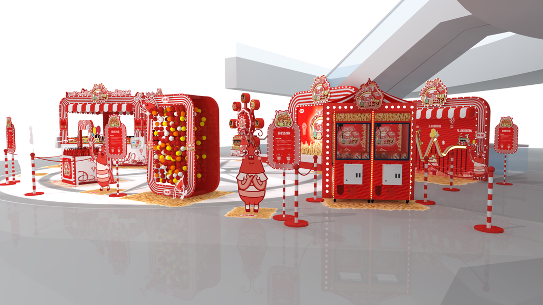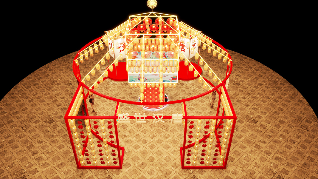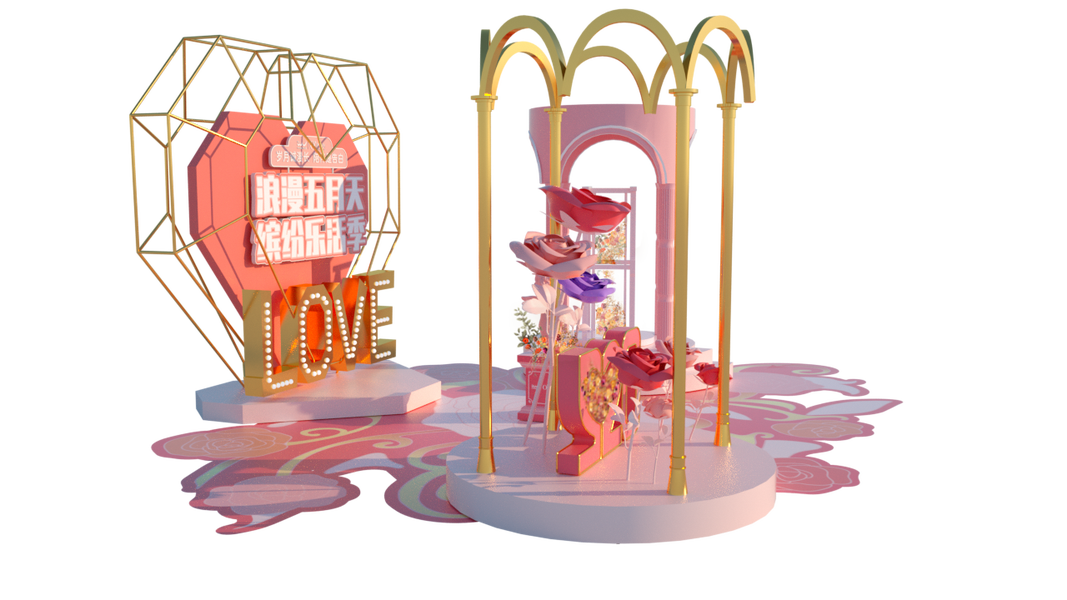 国潮风格商业美陈3D效果图设计 国潮DP打卡拍照点位