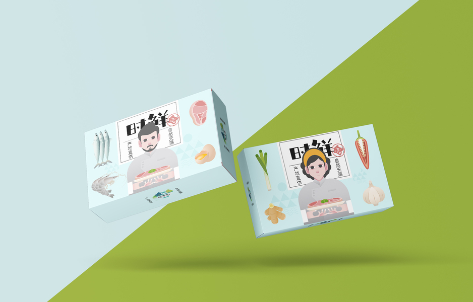 {原创}水果玉米食品包装礼盒手绘插画设计