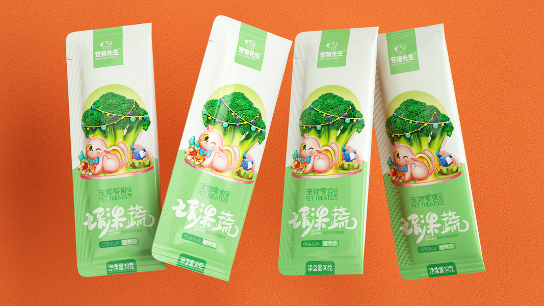宠物先生七彩果蔬猫条产品包装设计