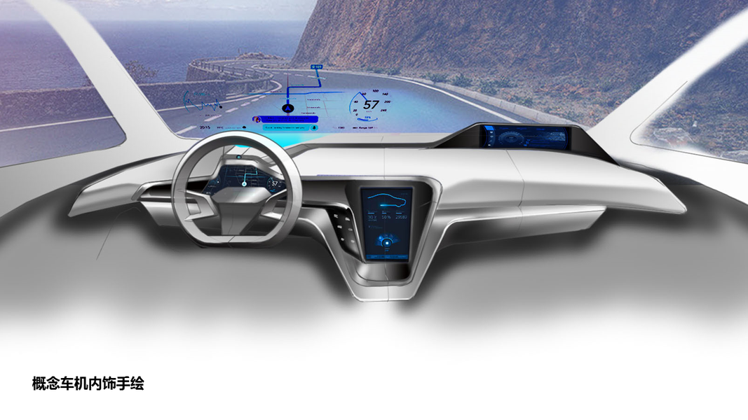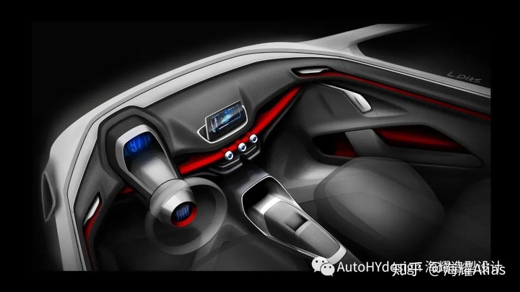 汽车内饰设计方向盘座椅中控台手绘