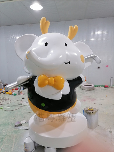 IP吉祥物公仔雕塑商业街美陈摆件玻璃钢大象卡通雕塑