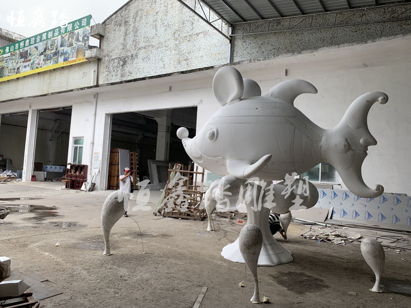 台湾澎湖不锈钢抽象彩绘鱼雕塑