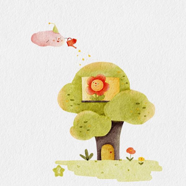 淡彩手绘卡通小物件水彩教程头像手帐素材治愈森系