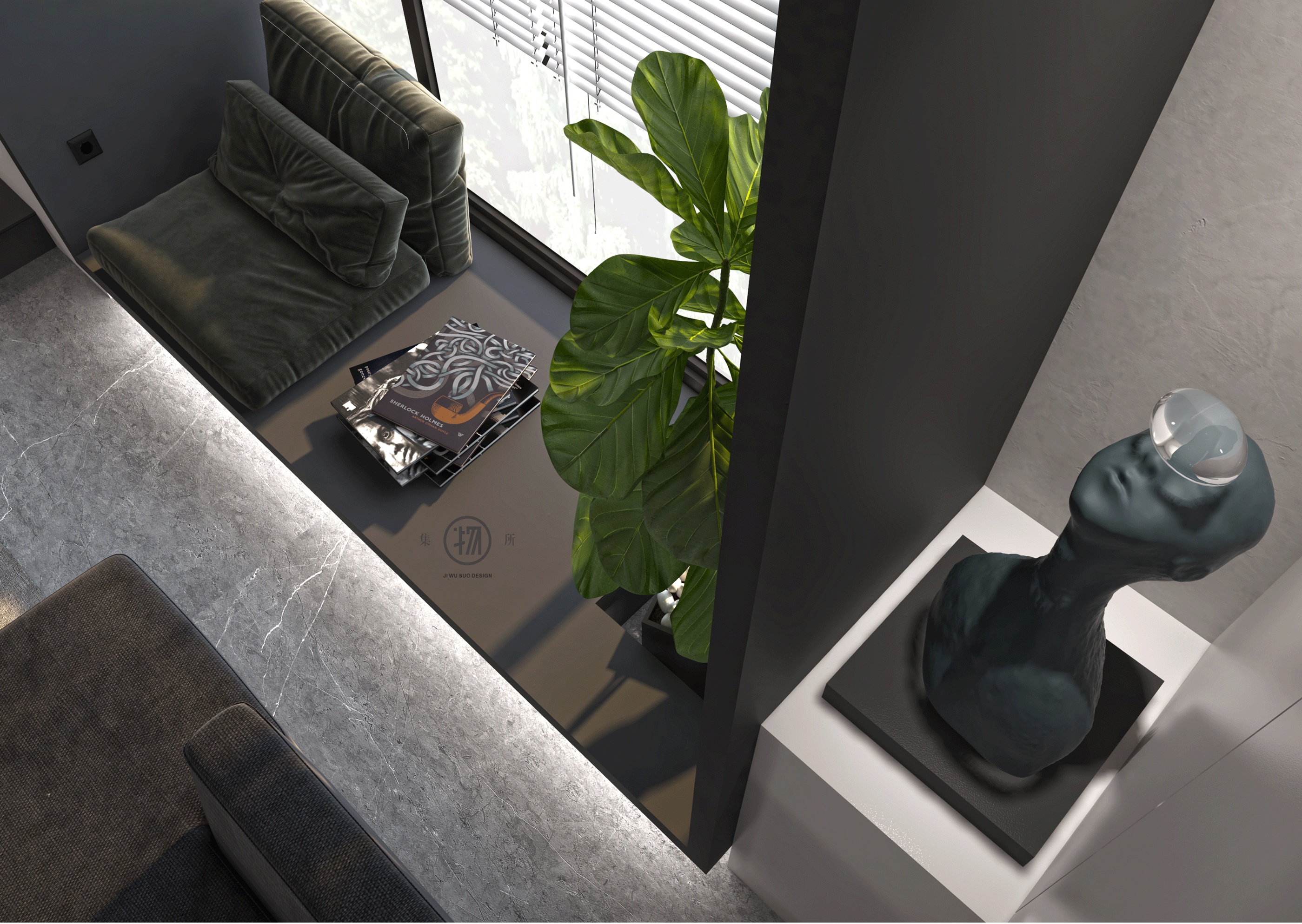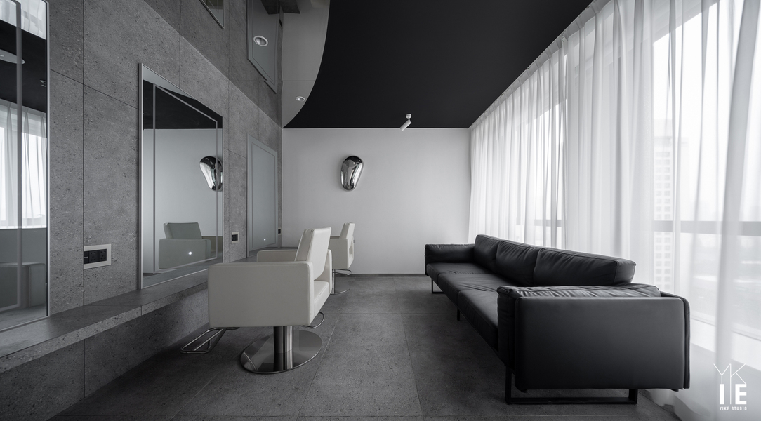 禾里设计丨很灰的洗剪吹中心室内空间表现