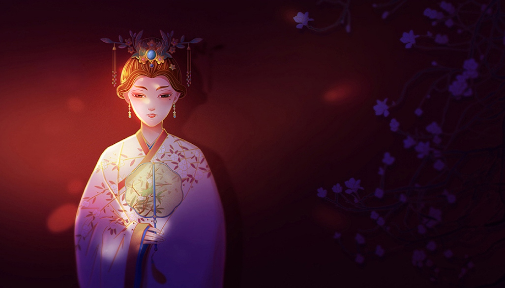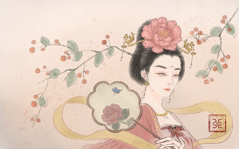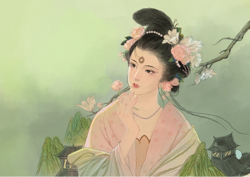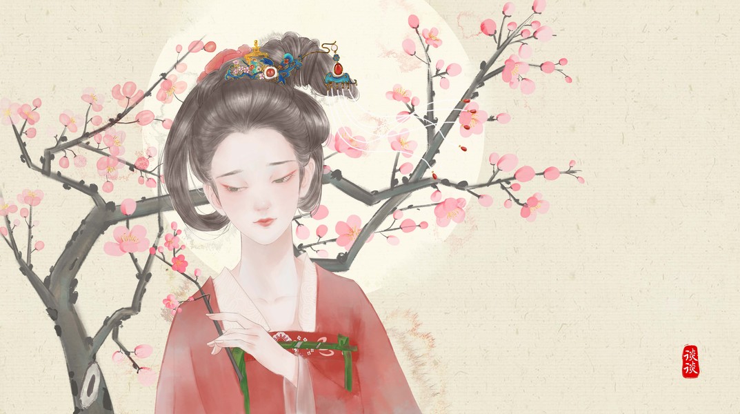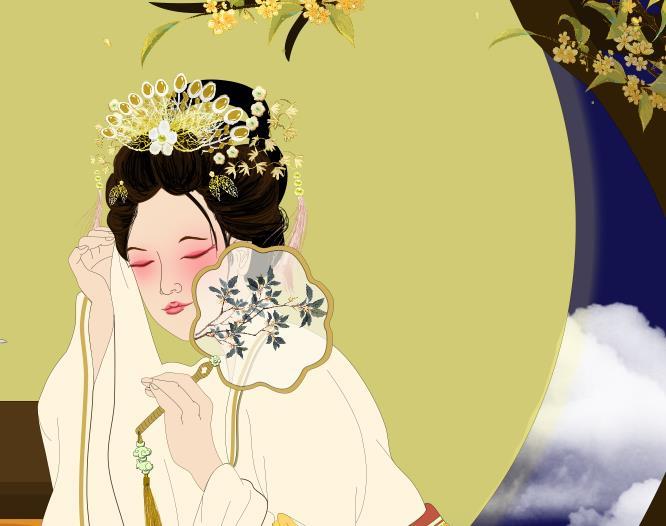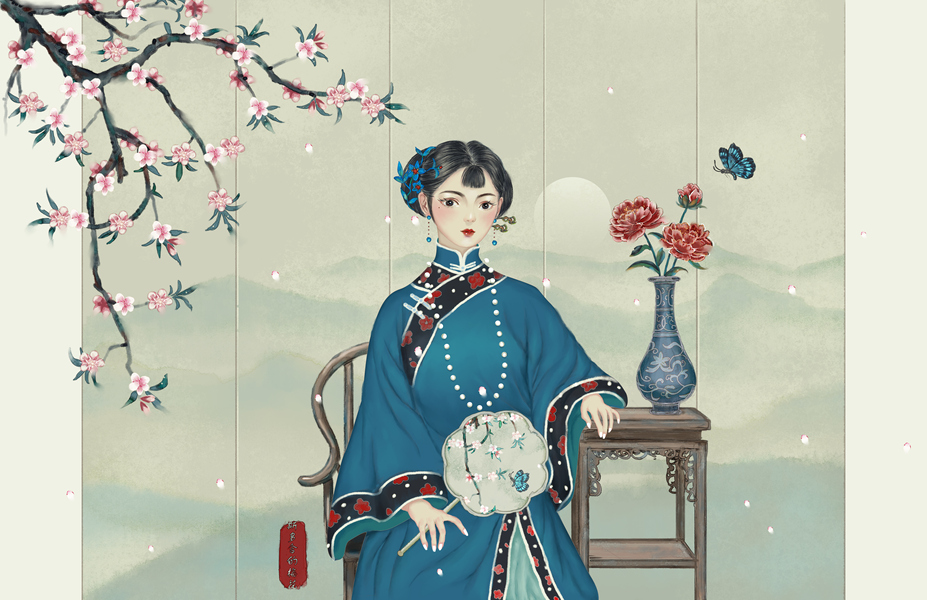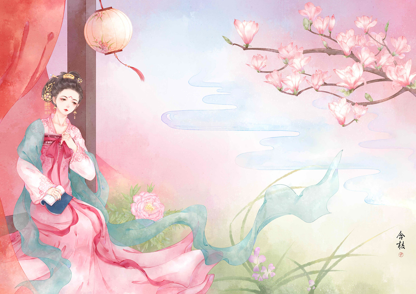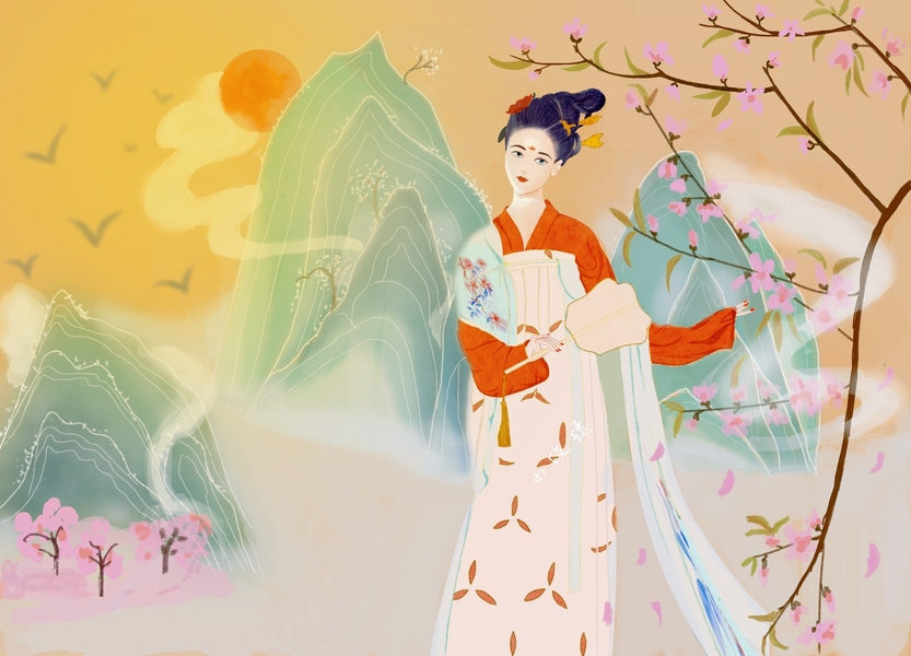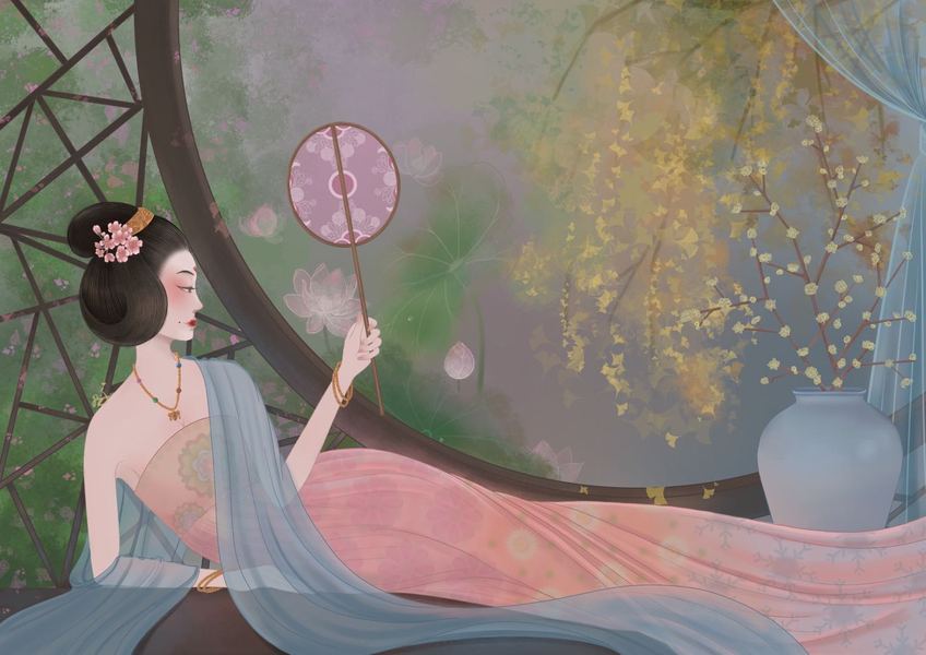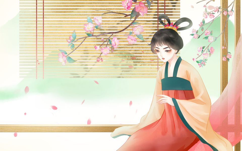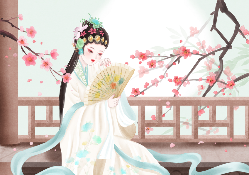 桃花扇题画女子柔媚定情诗扇栏杆头饰