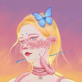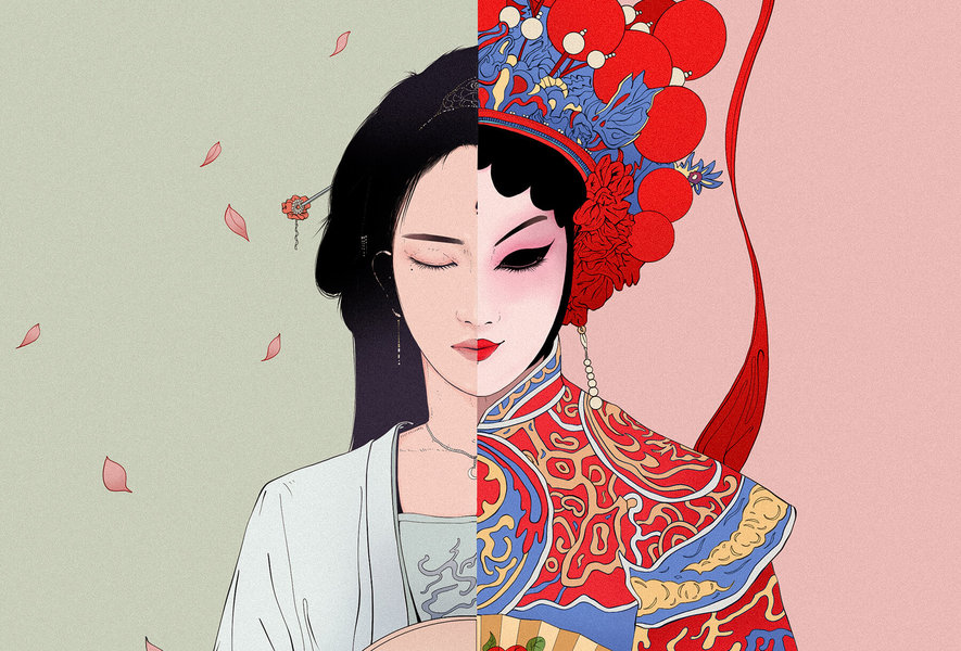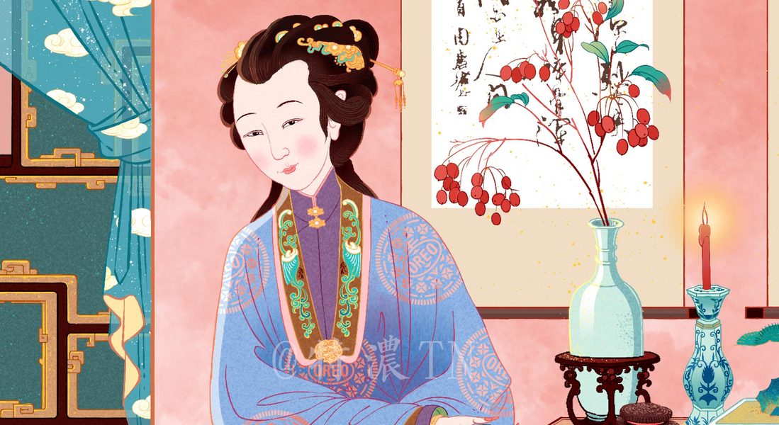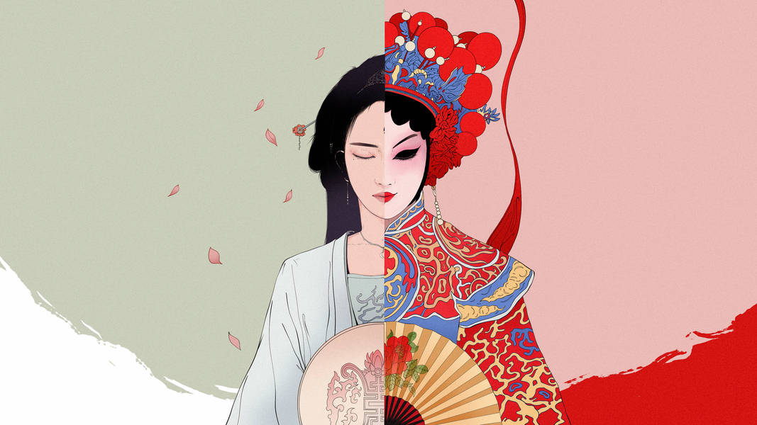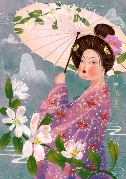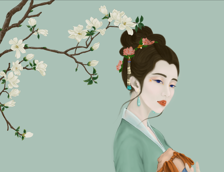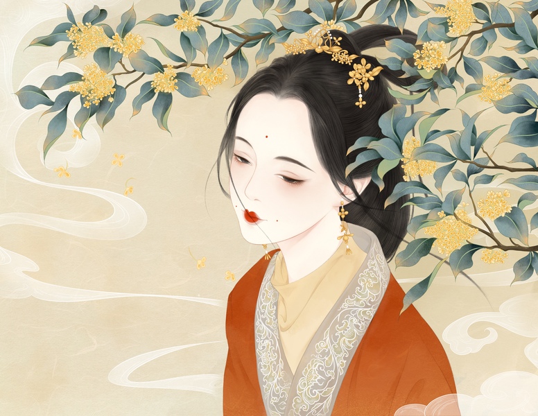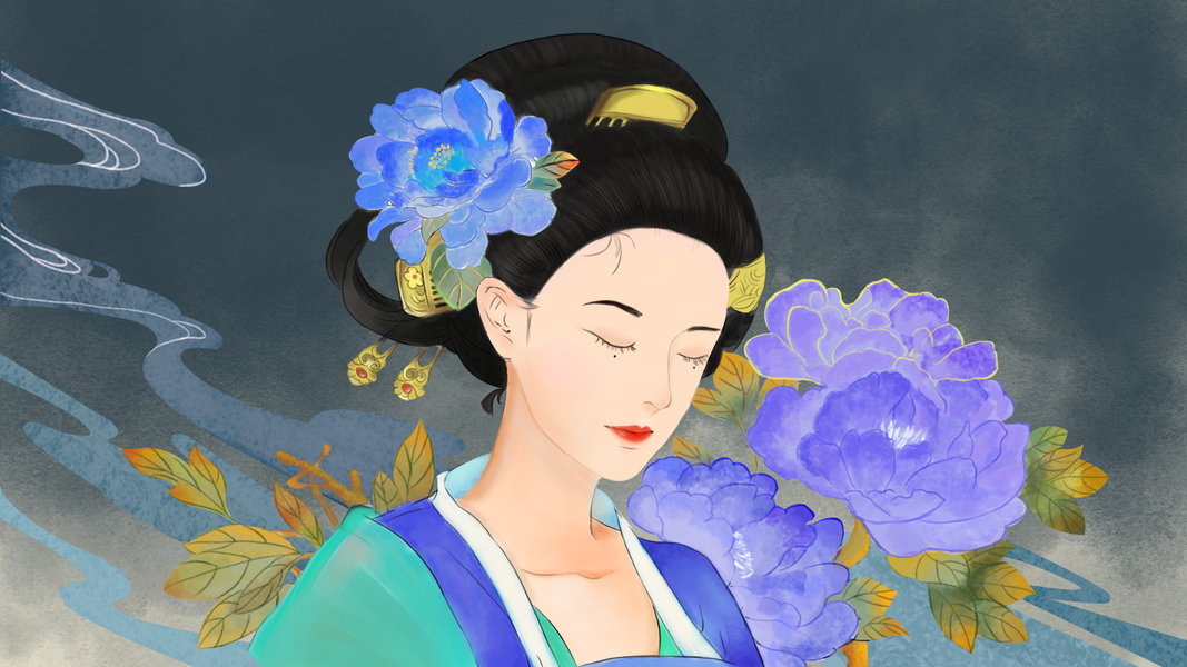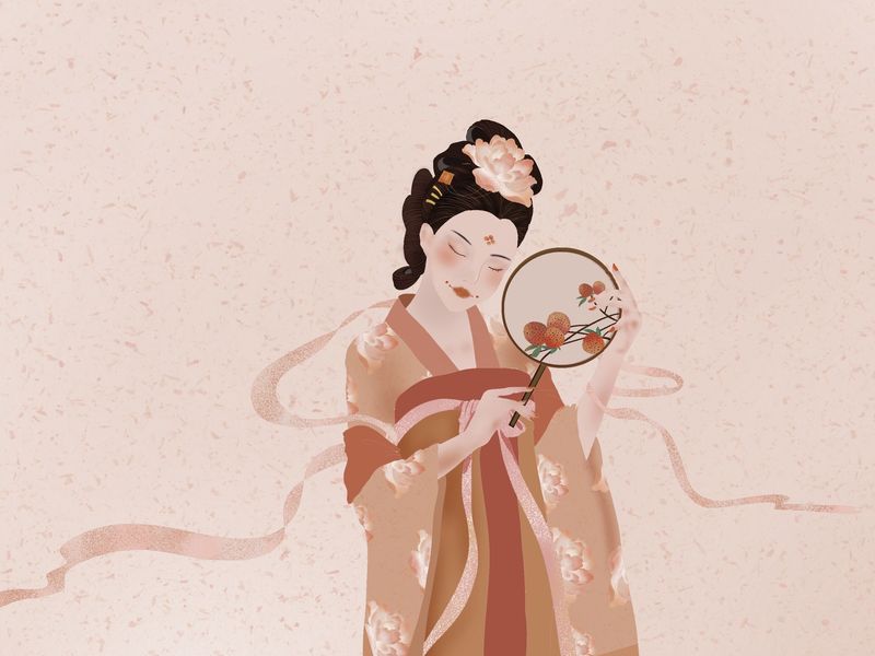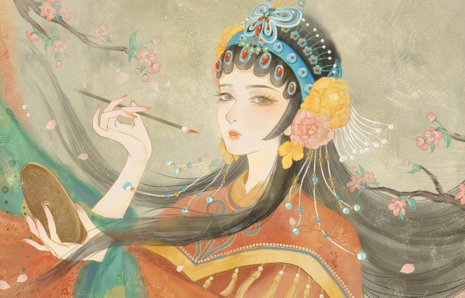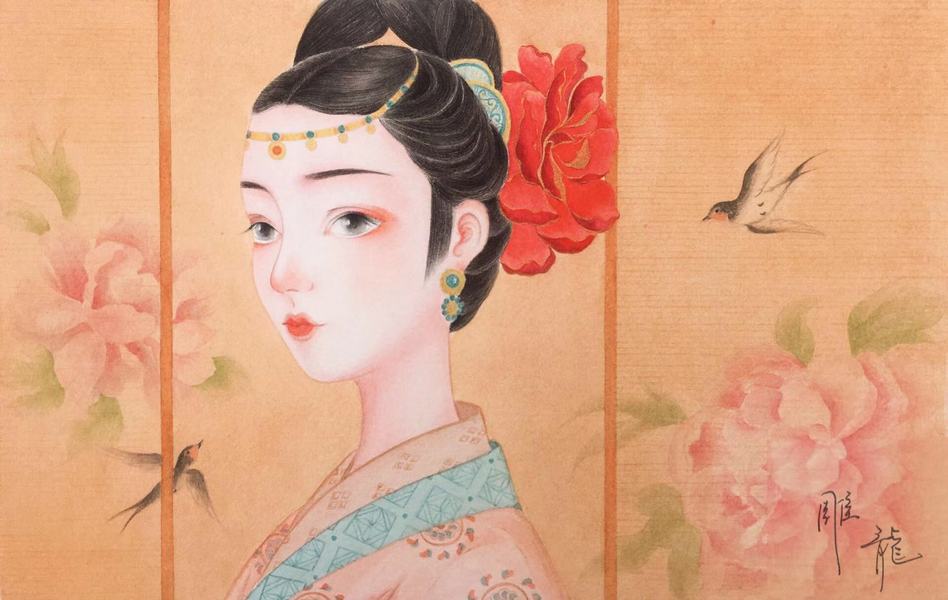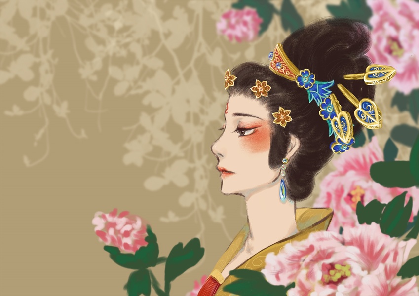 桃花扇题画女子柔媚定情诗扇栏杆头饰