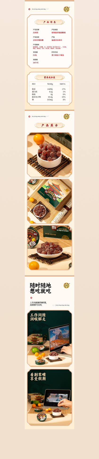 泉利堂|川贝味枇杷糕|金桔柠檬软糖|左寒文化