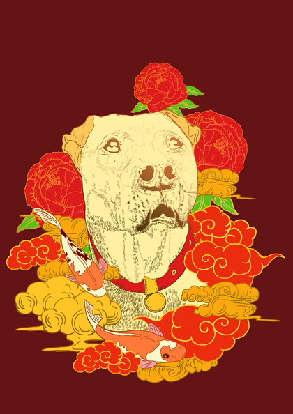 宠物市场开业海报插画部分――《旺狗游鲤》