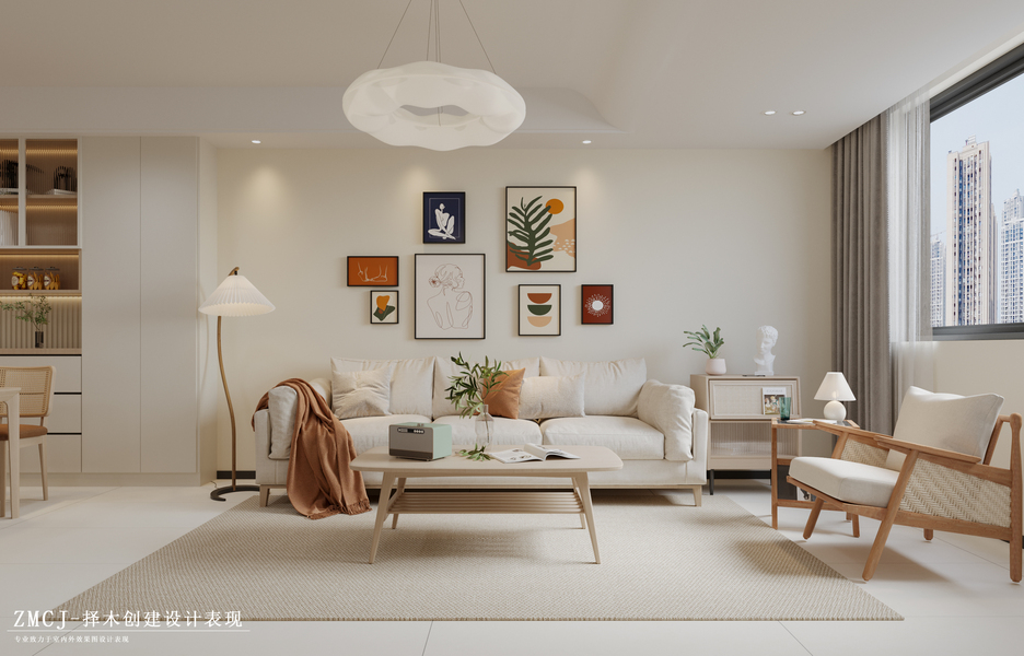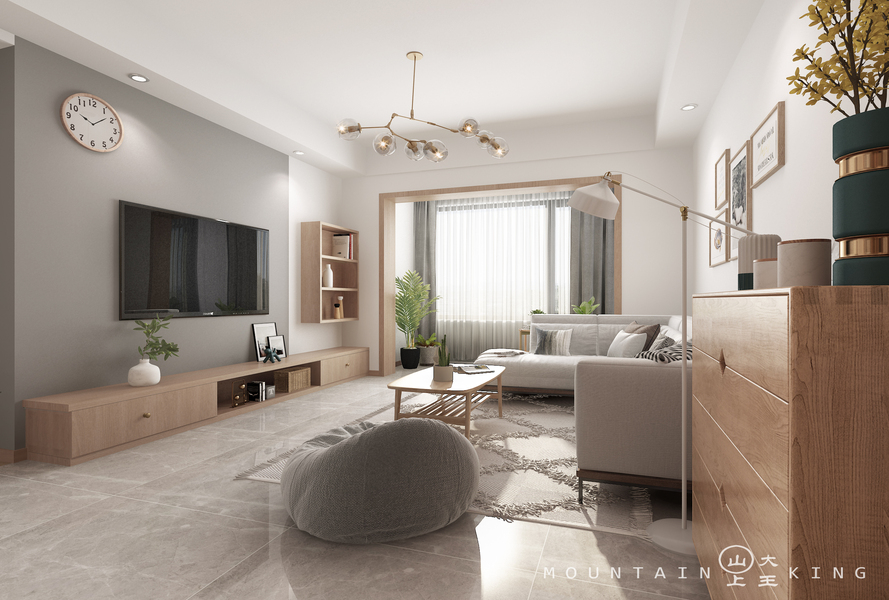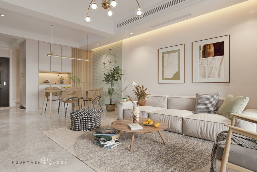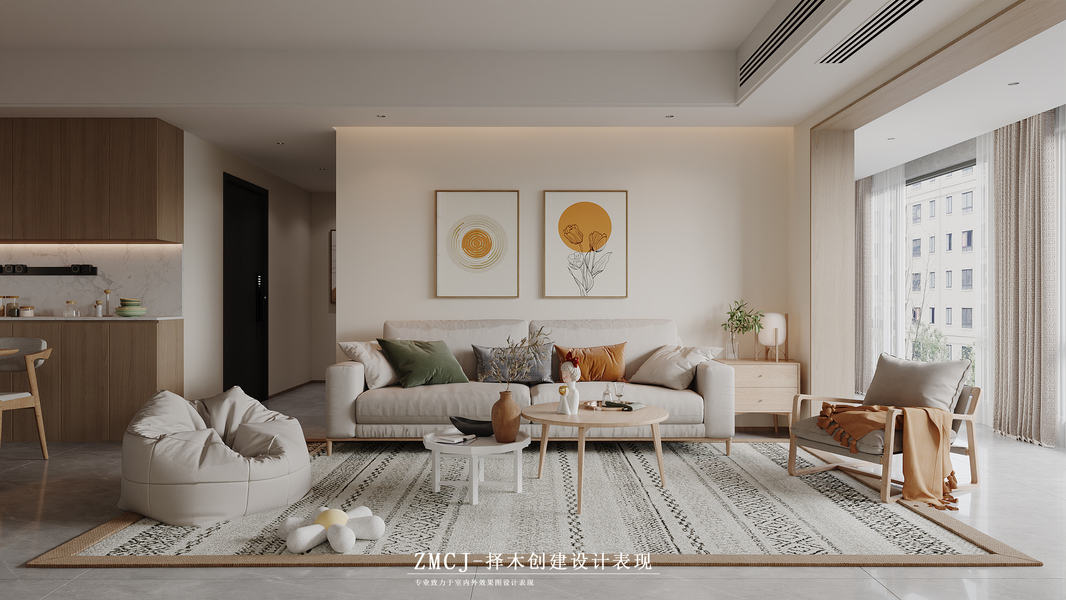 原木风客餐厅厨房卧室—择木创建新晨效果图