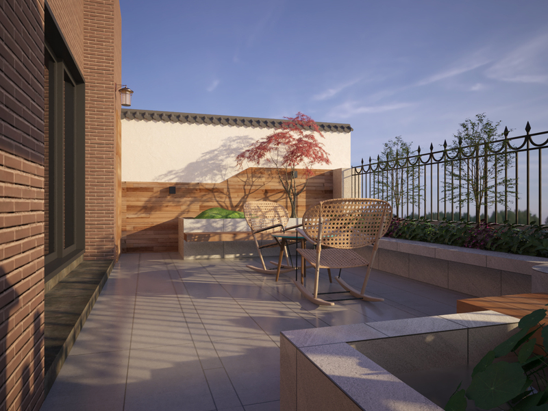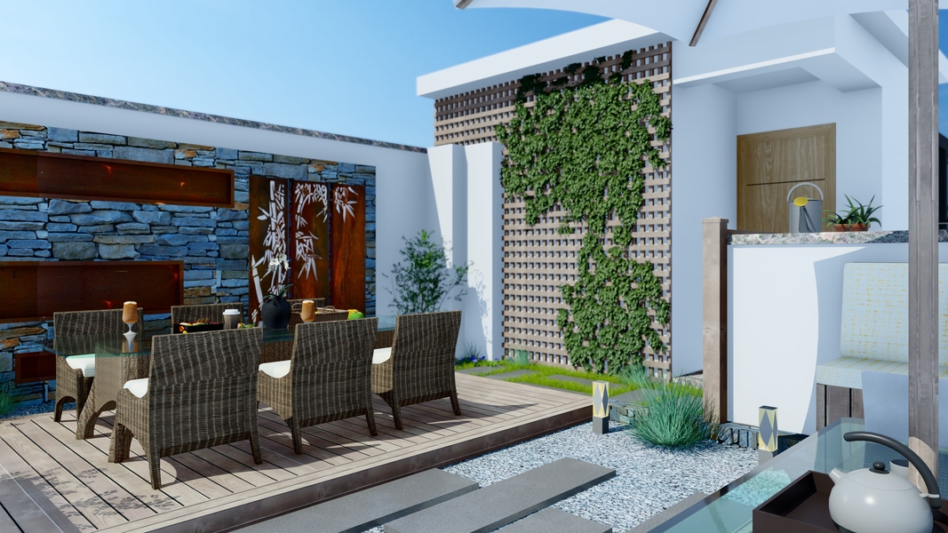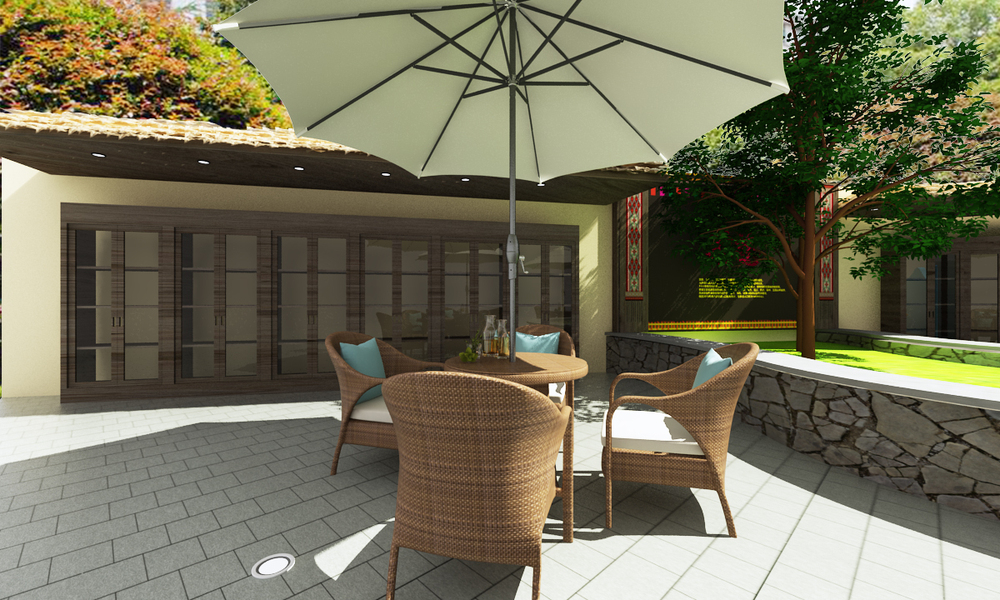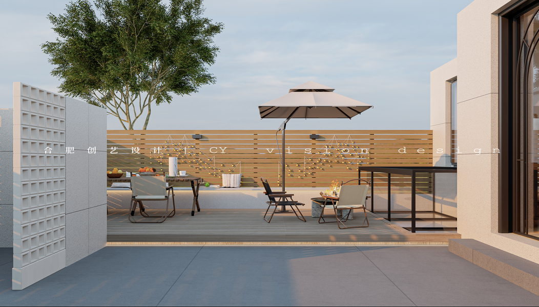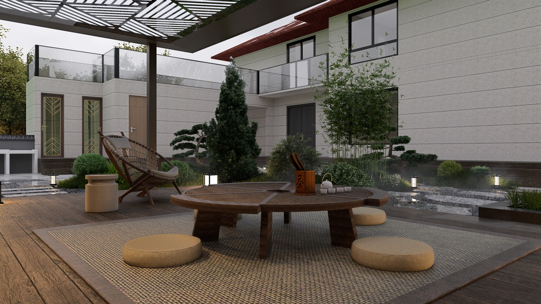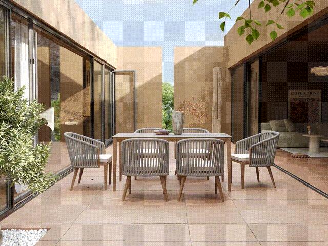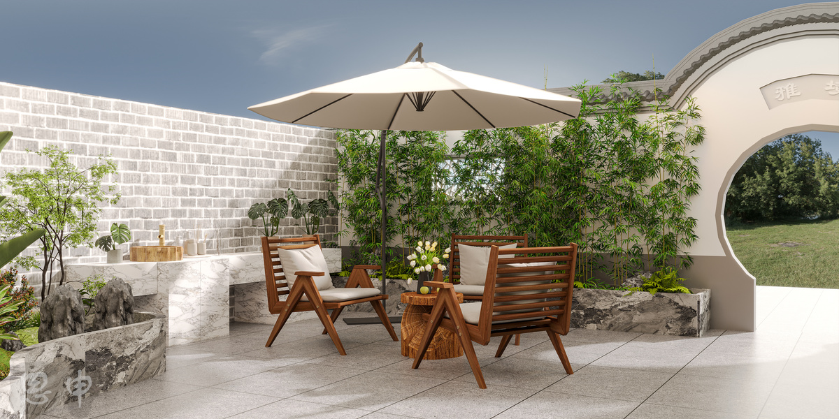 户外家具渲染 | 高端写实 | 侘寂民宿风户外餐桌椅