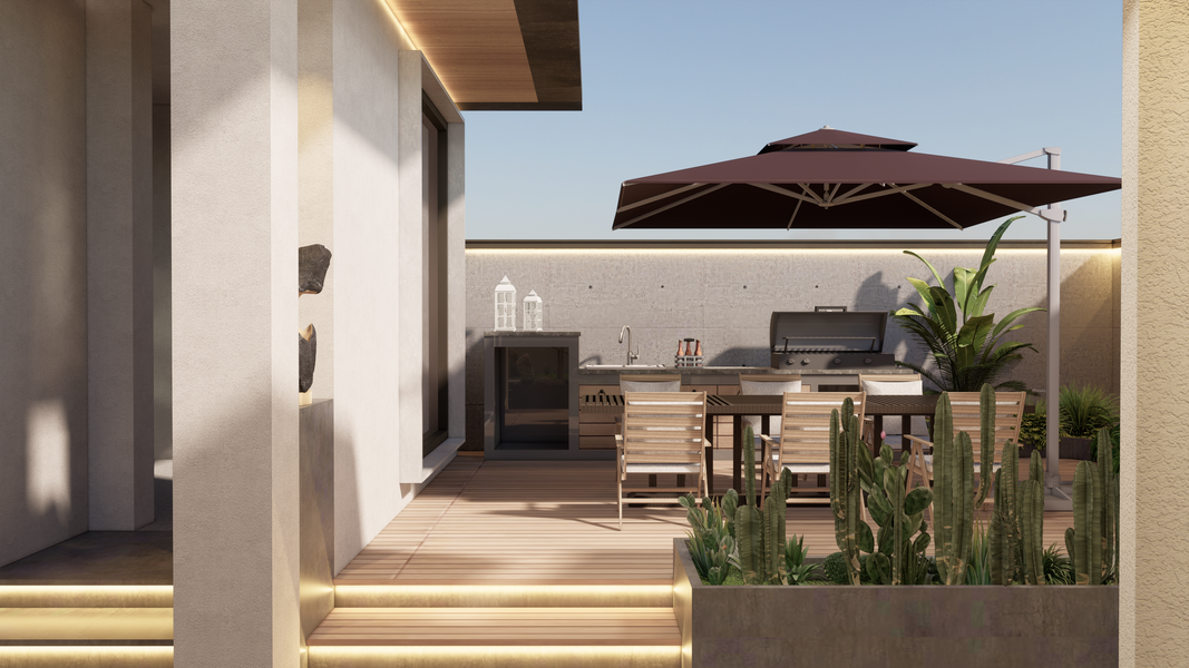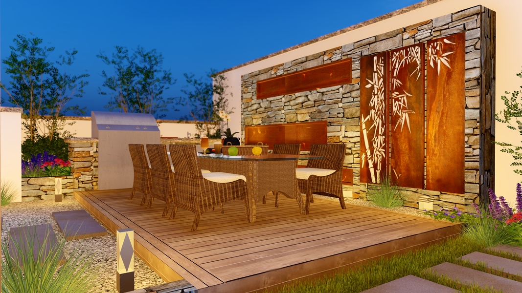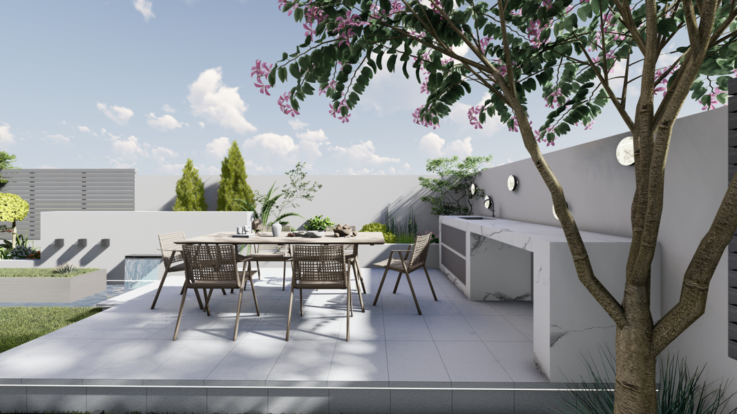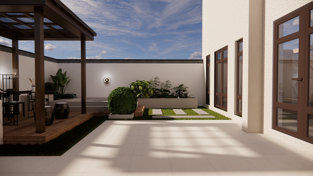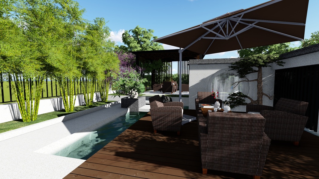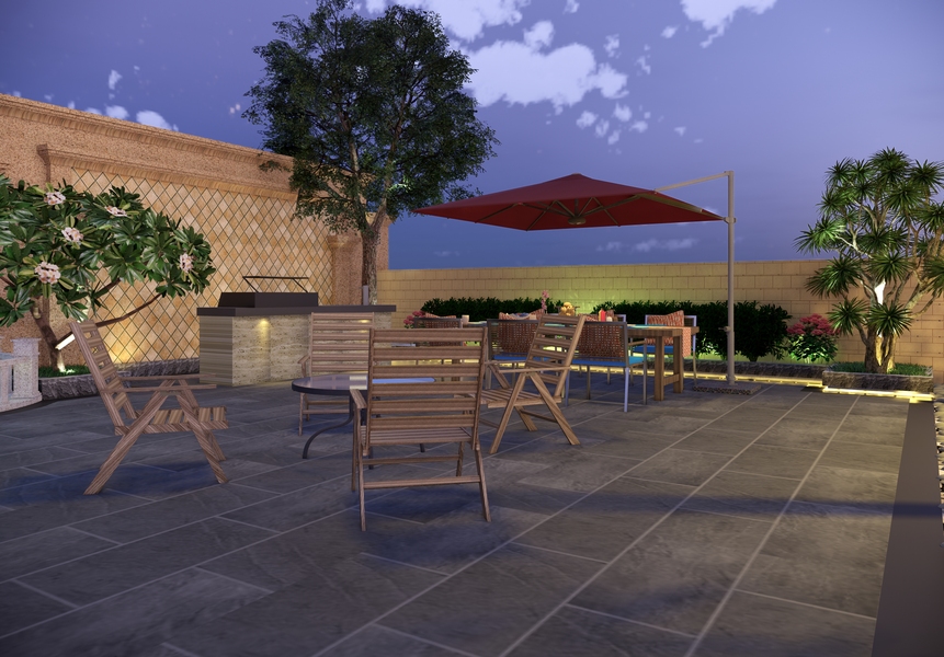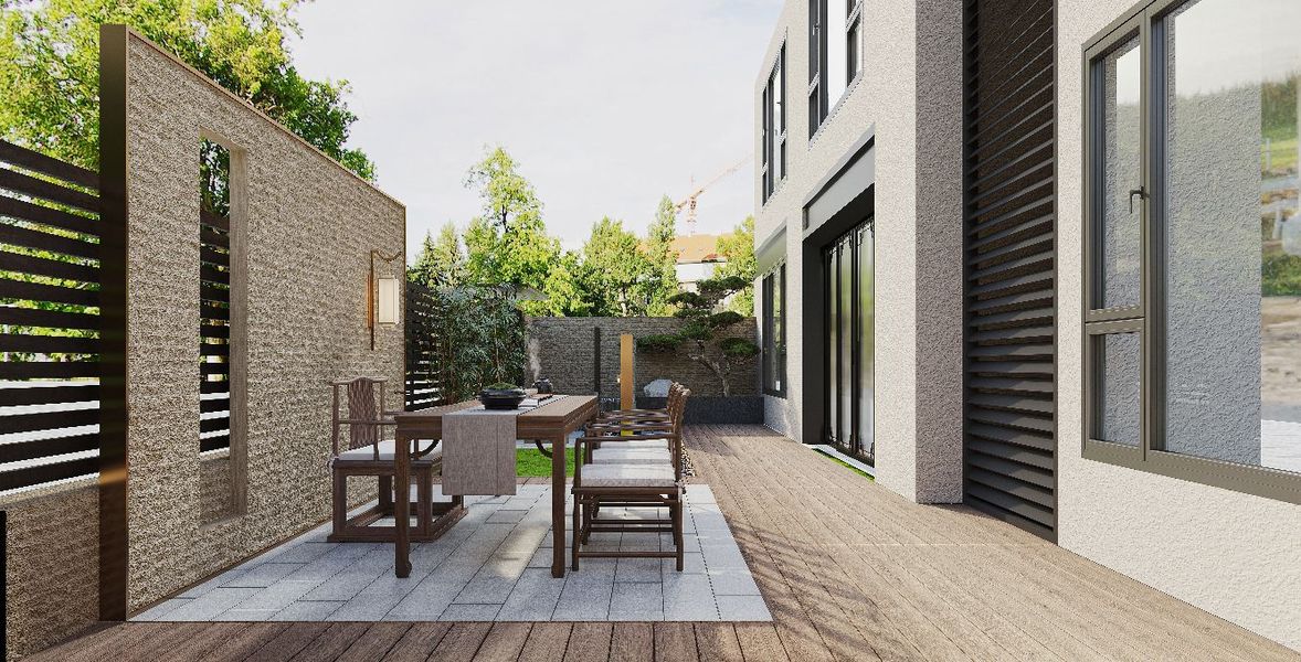 户外家具渲染 | 高端写实 | 侘寂民宿风户外餐桌椅