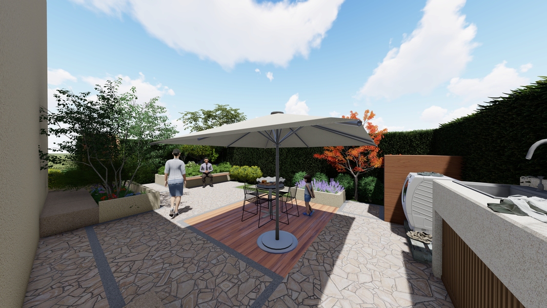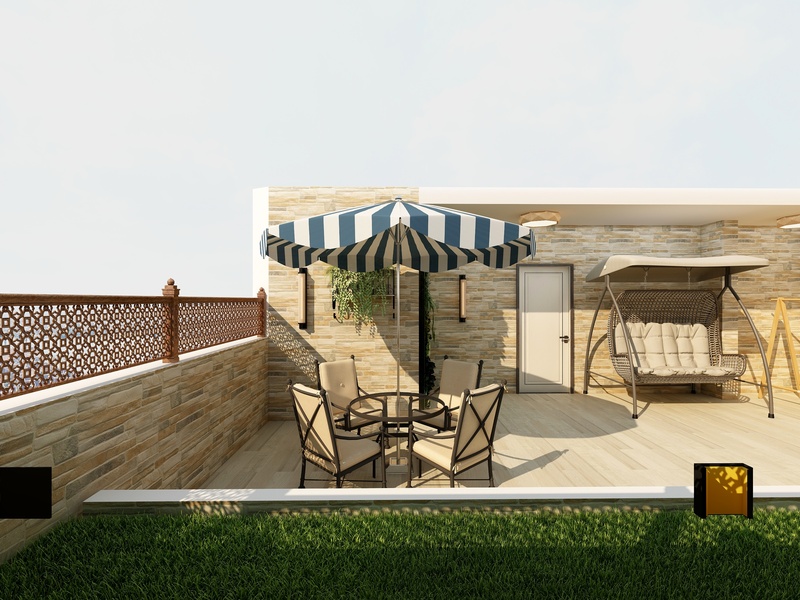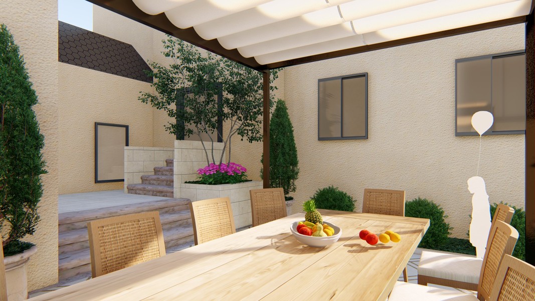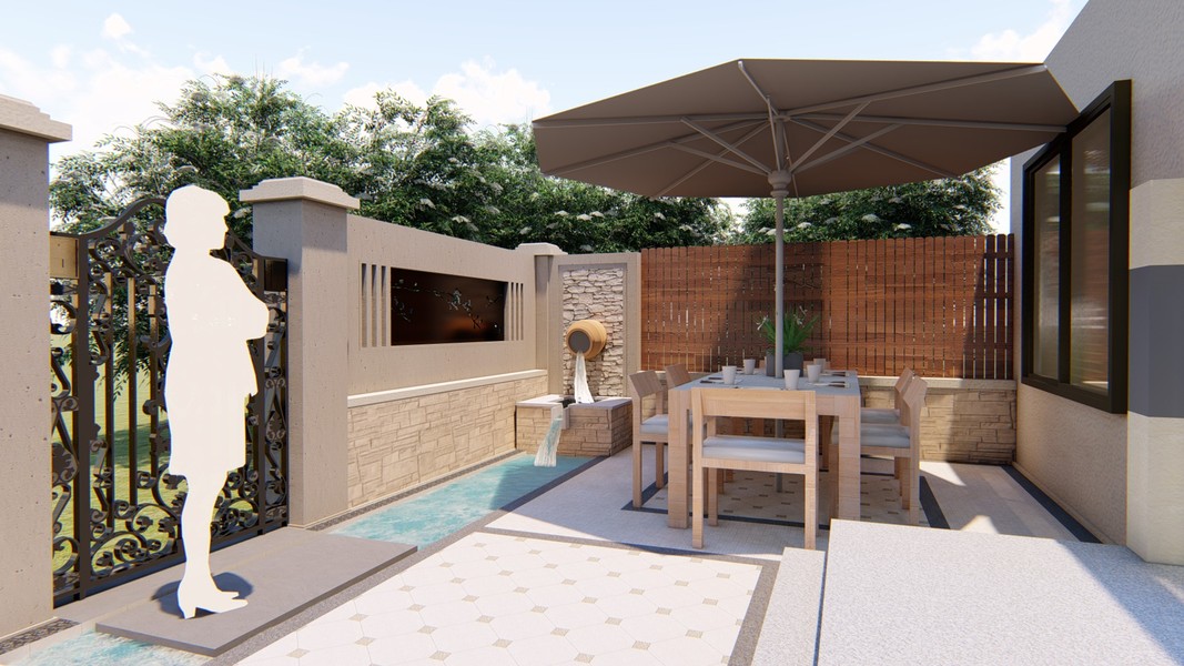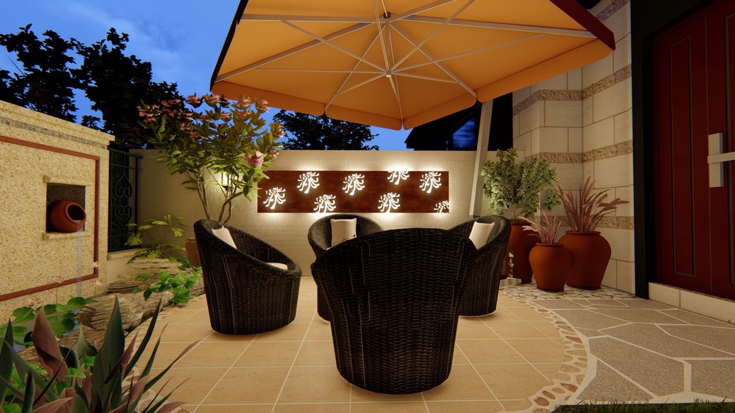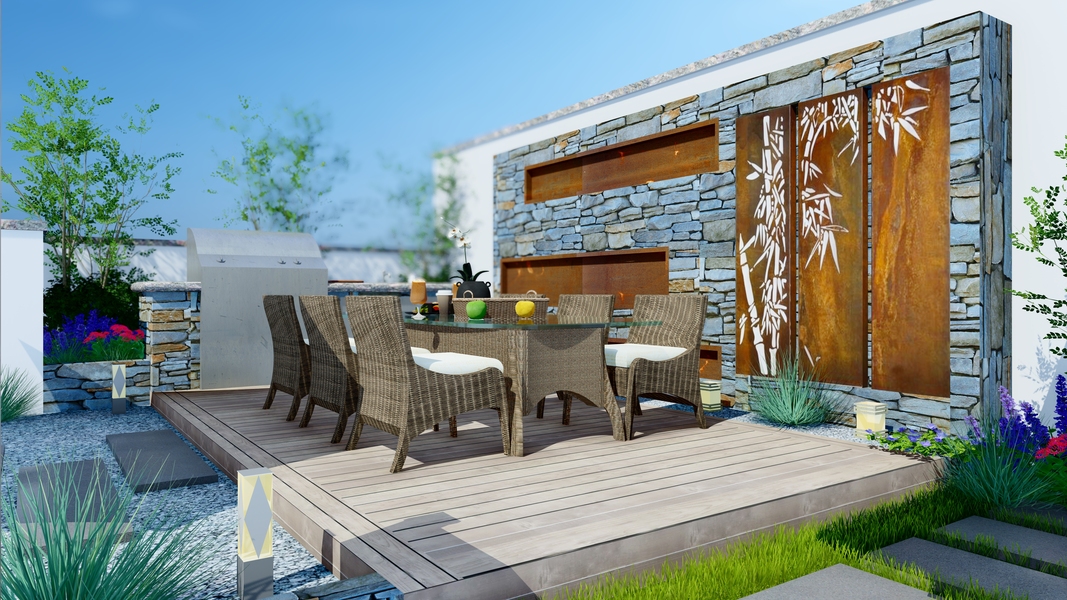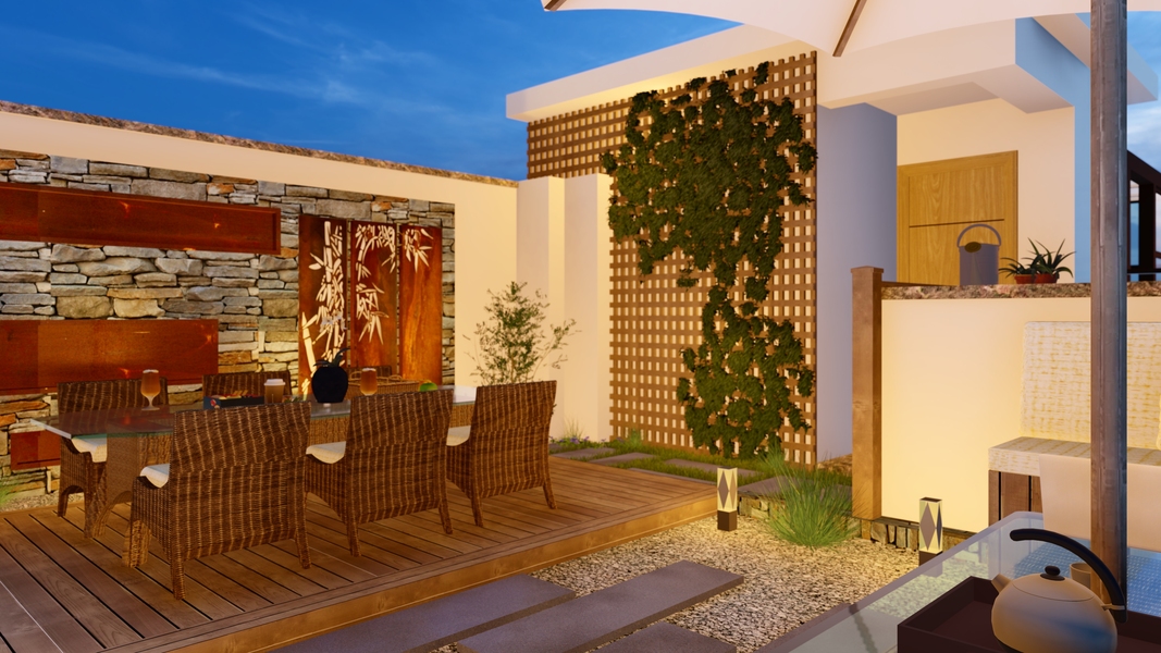 户外家具渲染 | 高端写实 | 侘寂民宿风户外餐桌椅