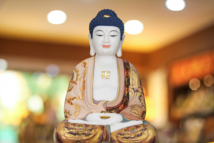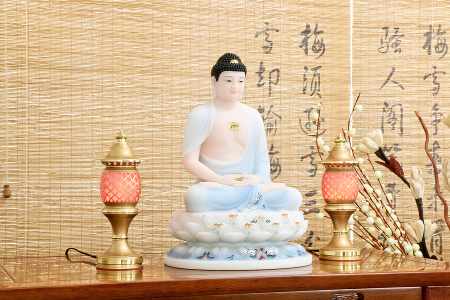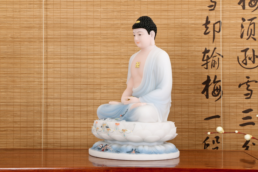 工艺品拍摄 珐琅彩汉白玉佛像场景图摄影