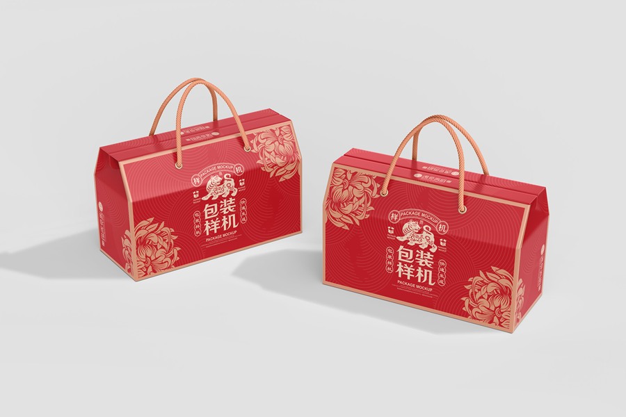 中国风国潮文创手提绳屋顶盒样机包装样机