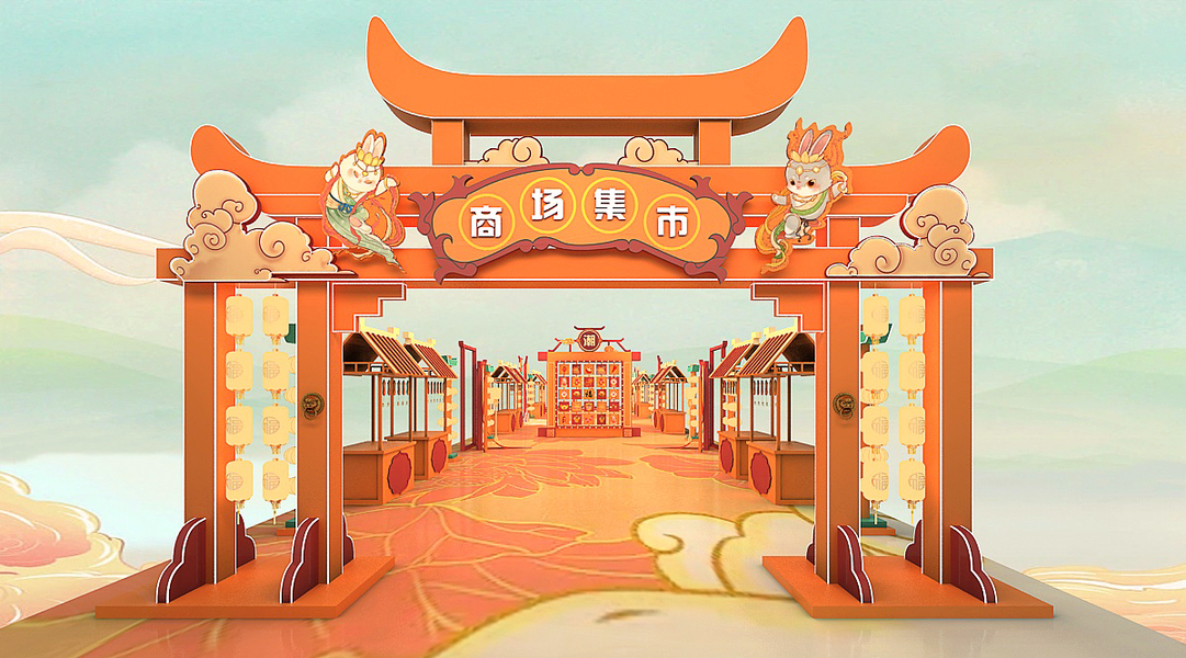 商场集市3D设计效果图