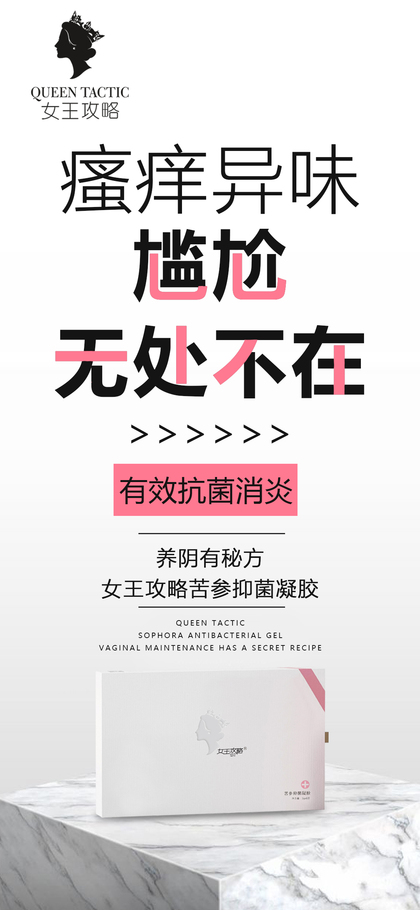 女王攻略私密养护女王/苦参/私护抑菌凝胶产品海报