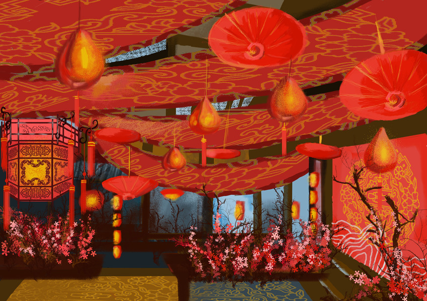新中式婚礼手绘"赤壁"